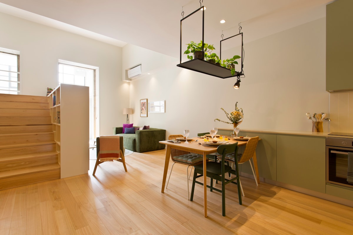 Located on the second floor, this apartment hosts four guests and features air conditioning, a washer, a meditation room/mini gym and a balcony facing Rua Santa Catarina. The lower-floor bedroom opens to the living room via a pocket door. Near Bolhão Market, Aliados and the Douro River. For guests traveling with little ones, a baby pack is available on request (€25) and includes a cot with linen, high chair, bathtub, baby amenities, and a baby towel.