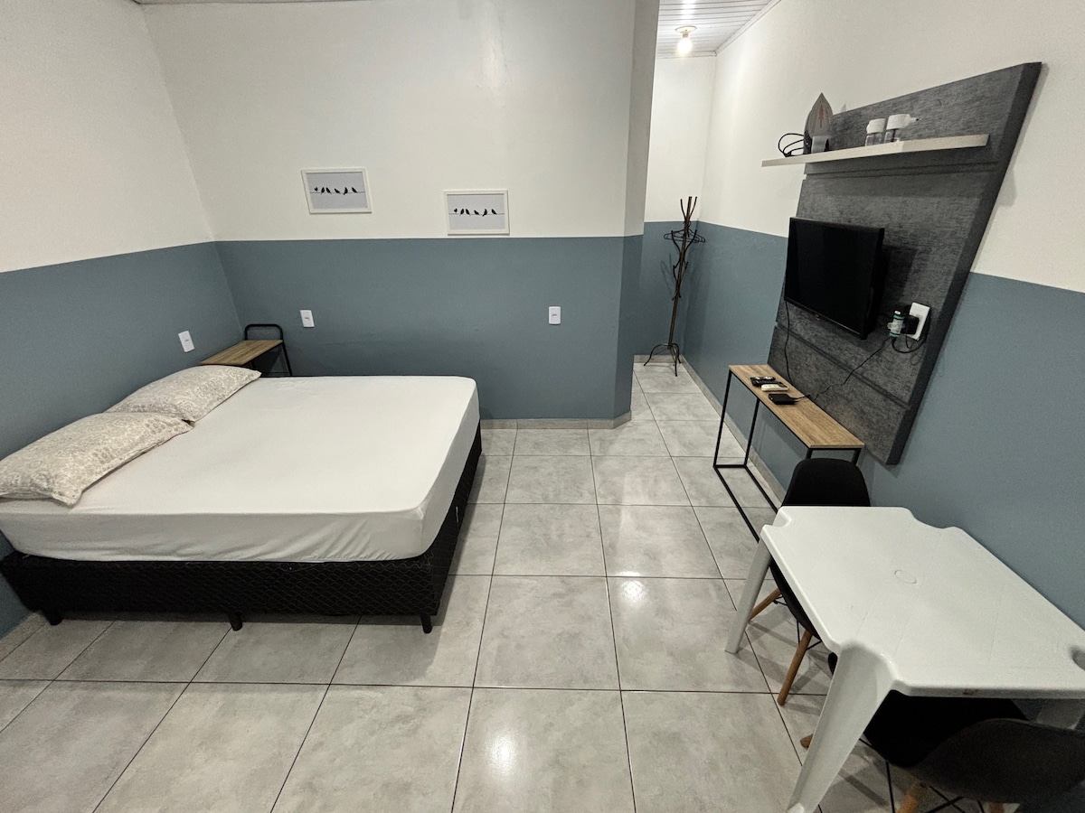 Aqui você encontra mais do que uma estadia: praticidade de verdade. O apt oferece itens que fazem diferença no dia a dia, como secador de cabelo, chapinha e ferro a vapor — perfeito para quem precisa se arrumar com conforto, seja para sair, trabalhar ou eventos. Espaço é moderno, bem organizado e conta com ar-condicionado, TV, Wi-Fi, jogos como Dama e Dominó, local aconchegante pensado nos detalhes. Ideal para quem valoriza conforto, funcionalidade e uma experiência completa, sem preocupações