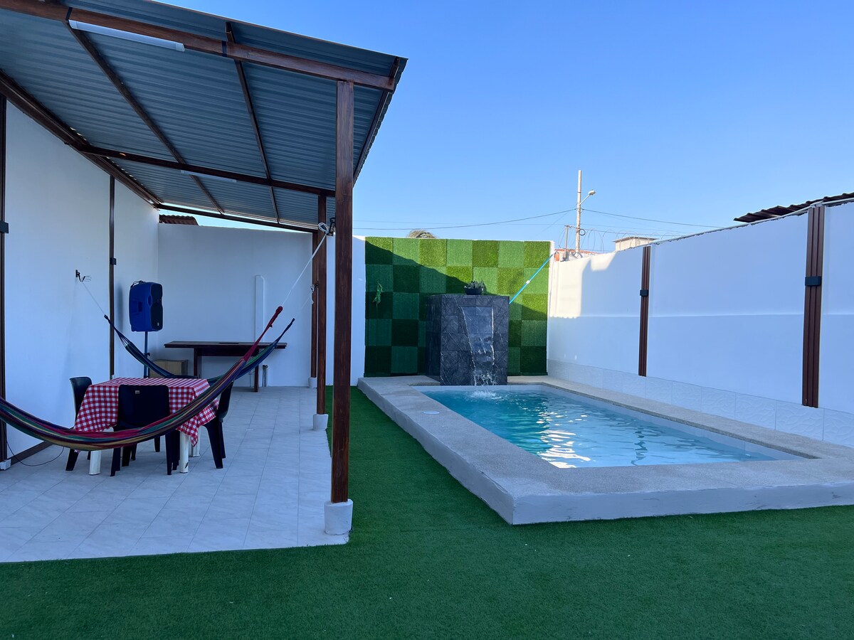 Enjoy unforgettable holidays in this fully furnished beachfront house with a private pool and jacuzzi. Perfect for families or groups of friends — and yes, pets are welcome! 🐾 ✨ Features: • Spacious terrace with pergola and ocean view • Private pool with jacuzzi • Bathroom in every room • TV, WiFi, and hot water • Air conditioning (splits) in bedrooms • Private parking and 24/7 security with cameras • Bright beach-style decor