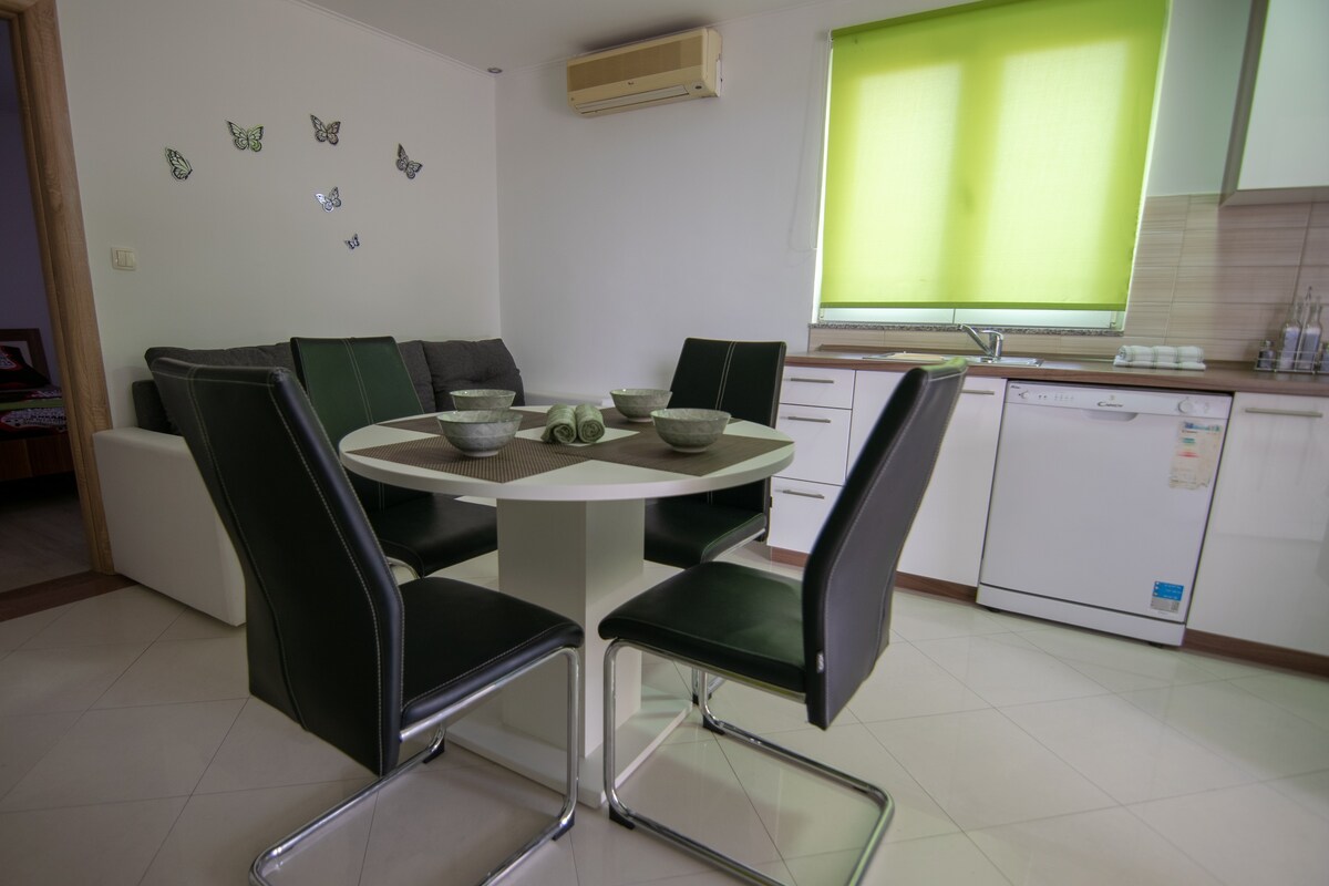 Ця нова і сучасна квартира, розташована в 1,5 км від центру Поседар'є, пропонує вам зручне та комфортне перебування для відпочинку та насолоди. За кілька кроків ви зможете розслабитися на чистому кам’янистому/гальковому пляжі, де на вас чекають шезлонги. Ідеально розташоване в регіоні Задар, недалеко від історичних пам’яток, чудових природних місць та безлічі можливостей для активного відпочинку (велосипедний спорт, піші прогулянки, альпінізм, плавання, веслування, риболовля, каякінг/рафтинг, банджі-джампінг тощо).