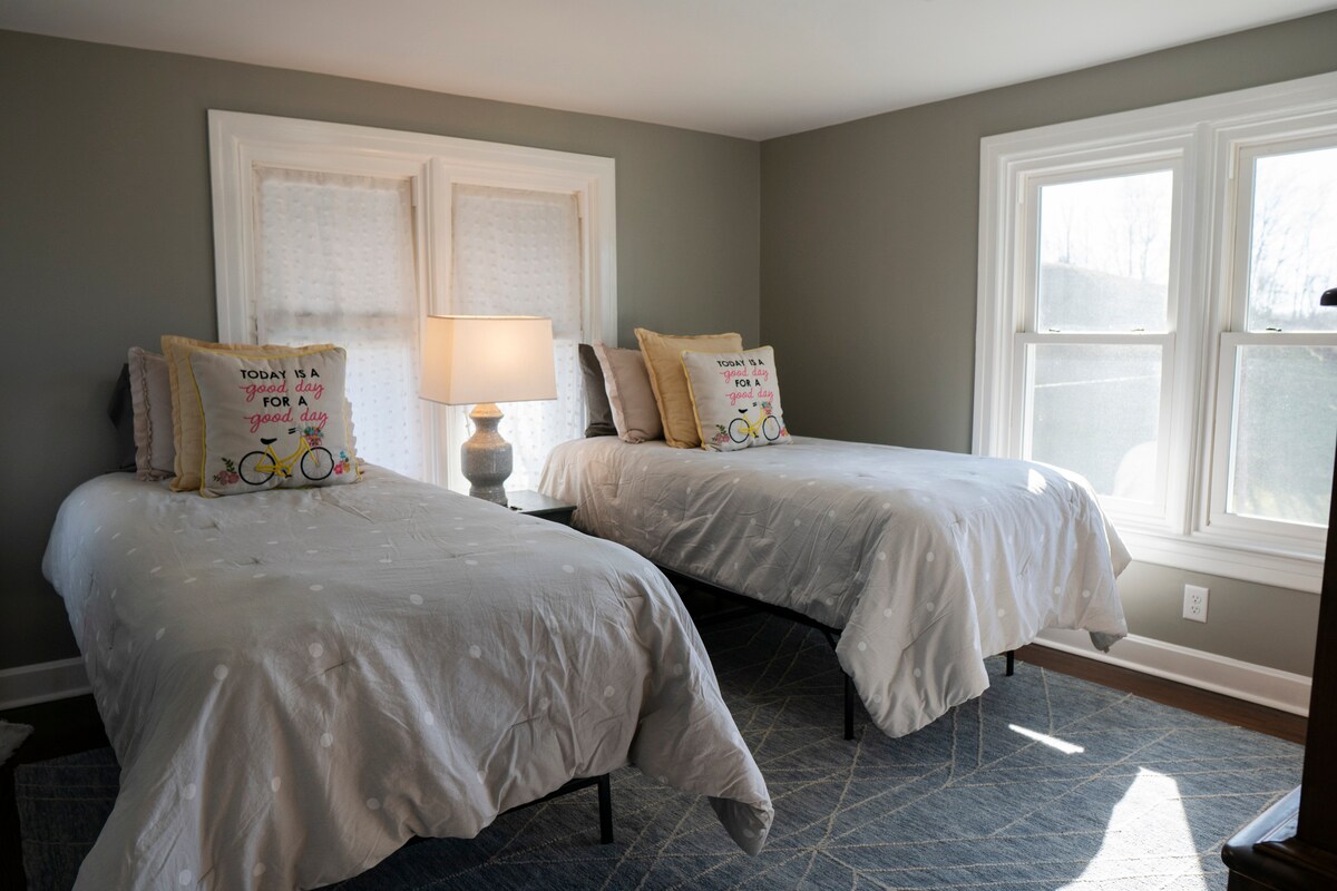 Great location for hikers and bikers on the C&O Canal! Located just steps from the trail you will have secure bike storage in a garage located on the property. If you are traveling by car we have a large parking pad and plenty of street parking. The house offers 4 BR's total and each one has a private bath. This room has two twin beds and is located on the 2nd floor. A self serve breakfast is included in the kitchen area. Other rooms available on our website bayfarmsbnb