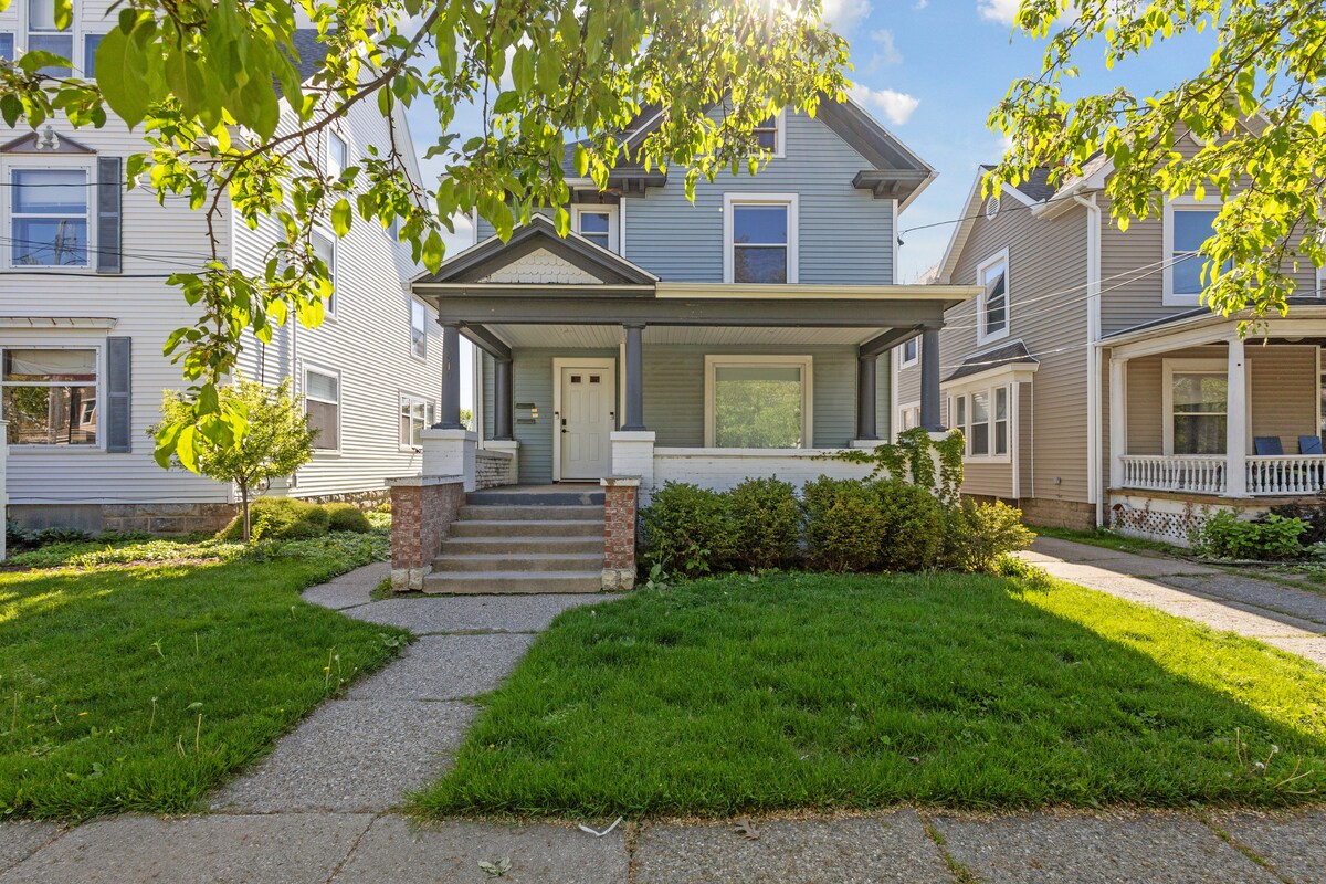 Чудовий дім у тихому районі неподалік від MSU, LCC, лікарні Спарроу, центру Лансінгу, магазинів у торговому центрі Eastwood Mall та в декількох хвилинах ходьби від парків, ресторанів та кав 'ярень. Цей будинок 1906 року був чудово відремонтований моїм чоловіком і мною. Ми переробили нагорі в розкішний апартамент з головною спальнею з соборними стелями, ванною з струменем і кам 'яною плиткою з великою шафою з пральною машиною та сушильною машиною всередині. Огороджений на задньому дворі з легким доступом з кухні задніх дверей для вашого цуценяти.