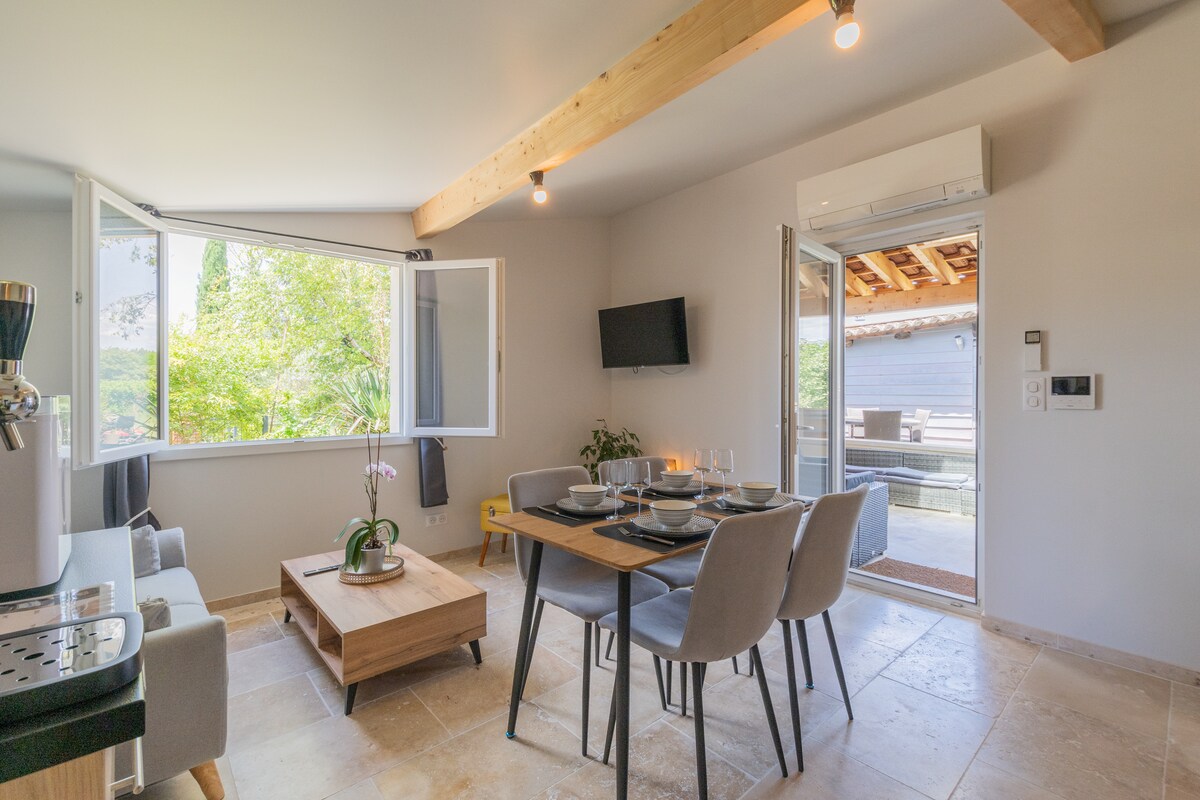 Розташовані в 30 хвилинах від ущелини Ардеш і Grotte Chauvet 2 - Ardèche і в 5 хвилинах від Сен-Монтана, з міткою «Village de caractère», котеджі «Les écrins de la Doline» вітають вас на тихий відпочинок між виноградниками та лавандою ! Наша концепція для вашого відпочинку : робіть те, що вам подобається, без обмежень, без прибирання, без простирадл, жодних рушників, ми також подбаємо про все! Мета полягає в тому, щоб ви провели відпустку у власному темпі, активному або розслабленому