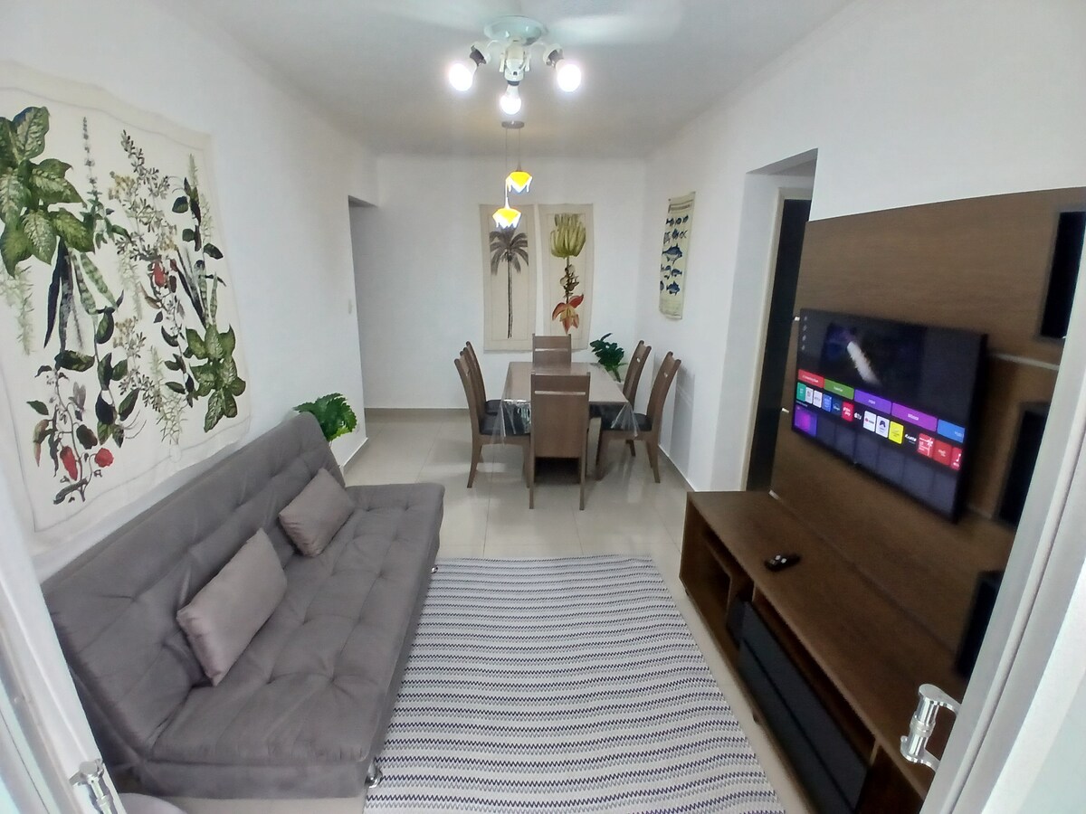 Красива квартира, відремонтована, з балконом, що виходить на море, панорамним видом і Wi-Fi. Чудове розташування на пляжі з близьким доступом до пекарень, ринків, ресторанів та барів. Відмінна дощата доріжка з велосипедом для тренувань спорту та дозвілля. Ця квартира розташована за адресою: Praia Grande SP , Bairro Aviação