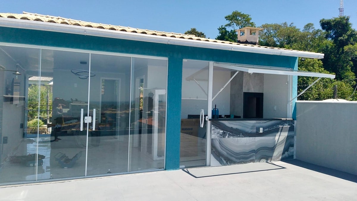 Це елегантне та ідеальне помешкання для комфортних подорожей до 10 осіб. Є 2 апартаменти з шафою та ванною, кондиціонер, вітальня, 1 спальня ( не люкс), їдальня на 8 осіб, кухня, соціальна ванна кімната, зона обслуговування з пральною машиною, зона для гурманів з зоною барбекю та дров 'яною піччю, душ на відкритому повітрі, 4 ванні кімнати, гараж на 4 автомобілі. У кількох метрах від пляжу, недалеко від кількох туристичних місць. Еміссаріо, Praça da Baleia тощо.