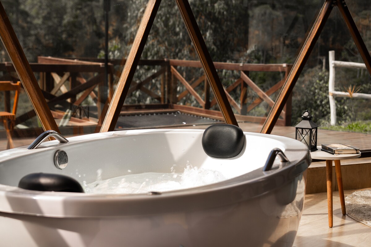 Насолоджуйтеся незабутніми враженнями в геодезичному куполі з приватним джакузі та панорамним видом! SkyDomo — це абсолютно ексклюзивне місце відпочинку, ідеальне для пар, які шукають відпочинку, романтики та зв’язку з природою в унікальній обстановці. ✔ Приватне джакузі з хромотерапією ✔ 150-дюймовий екран для фільмів із проєктором для кіновечорів ✔ Абсолютна тиша та повна конфіденційність ✔ Варіанти харчування з доставкою до помешкання Усе створено для того, щоб ви вирвалися з рутини та створили особливі спогади!