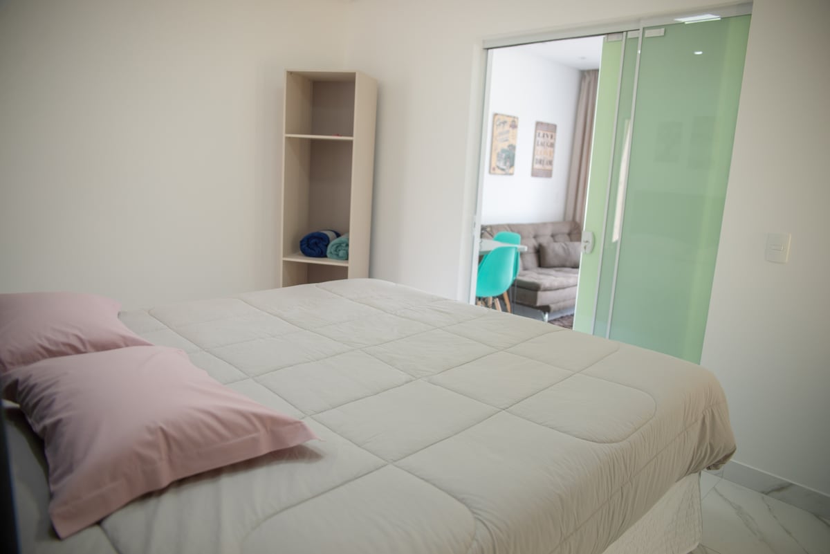 Чарівна та повна квартира, щоб насолодитися найкращим у Флоріанополісі. Апартаменти з однією спальнею, Wi-Fi та кондиціонером, окремою ванною кімнатою та вітальнею з міні-кухнею (2 конфорки та міні-бар). У нас є достатньо закритого патіо, крім того, що ми знаходимося в 350 метрах від пляжу та торгового центру району. Постільна білизна та постільна білизна надаються, а також кухонне приладдя (каструлі, посуд, склянки, чашки та столові прибори). Домашні тварини не приймаються.