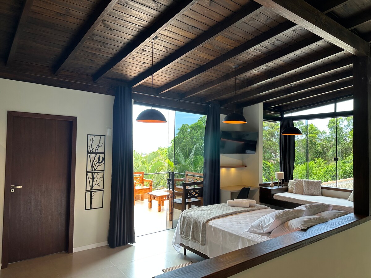 Відпочиньте та насолоджуйтеся легкими днями в цьому затишному та сучасному лофті, розташованому в тихому районі Канасв’єйрас, ідеальному для тих, хто шукає відпочинку, комфорту та практичності біля моря, новозбудованому, з джакузі з підігрівом, мальовничим освітленням, балконом із барбекю та панорамним видом. 🌿 Природа та спокій Вранці атмосфера приємна, з присутністю птахів, яких можна побачити і почути, створюючи атмосферу притулку і благополуччя навіть у високий сезон.