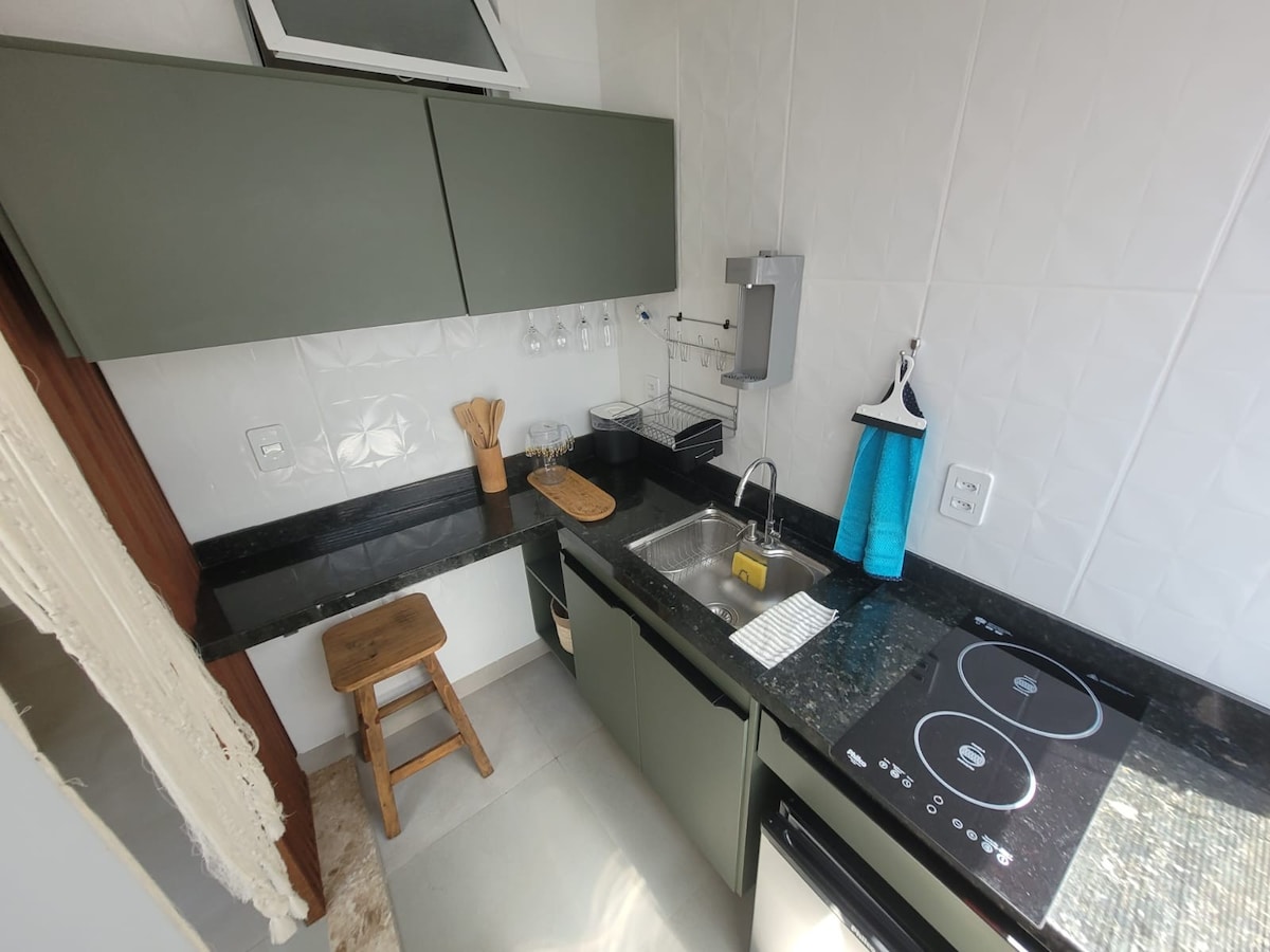 Затишний будинок, розташований в Орла-де-Боїпеба. - Ми були в хвилині ходьби від прибуття головного острова. - Балкон з прекрасним видом на річку, який впадає в море. - Вид на захід сонця. - телевізор 43'' з Netflix; - Кондиціонер. - Міні-бар - Незалежний вхід - Два стельові вентилятори. - Пральна машина. - Поруч із їдальнею/барами/ринками та ресторанами. - Постільна білизна. - Купальник. - Шафа. - Бікама