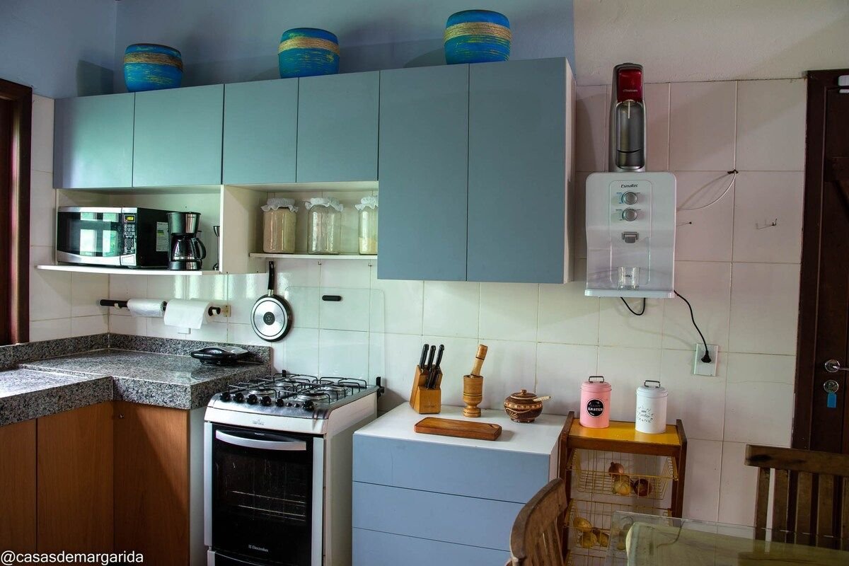 Сучасний, добре обладнаний і затишний будинок, ідеально підходить для сімей або груп друзів. Розташований у кондомініумі Mar Doce Lar, оточеному природоохоронною зоною, він пропонує контакт із природою та спокій. Всього в 300 метрах від 2-го пляжу (7 хвилин ходьби), недалеко від ринків і ресторанів. Кондомініум має безмежний басейн і панорамний краєвид. Ідеально підходить для тих, хто шукає привілейоване розташування, комфорт, безпеку та тишу. Слідуйте в Insta: @casasmare