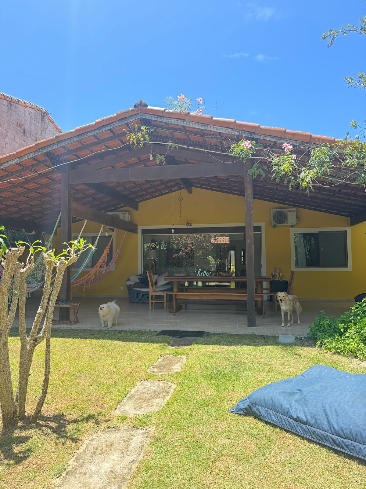 Сучасний і чарівний пляжний будинок з гарним газоном, щоб відпочити й насолодитися пляжами регіону Порту-Сегуру. Розташована в тихому районі, менш ніж за 2 хвилини від річки, за 7 хвилин від пляжу та до 3 хвилин від пекарні та продуктового магазину. Комфорт, природа та відпочинок у тропічному раю. Casa Refúgio Céu Azul ідеально підходить для тих, хто шукає спокою, контакту з природою та комфорту в Гуаю — Санта-Крус-Кабралія.