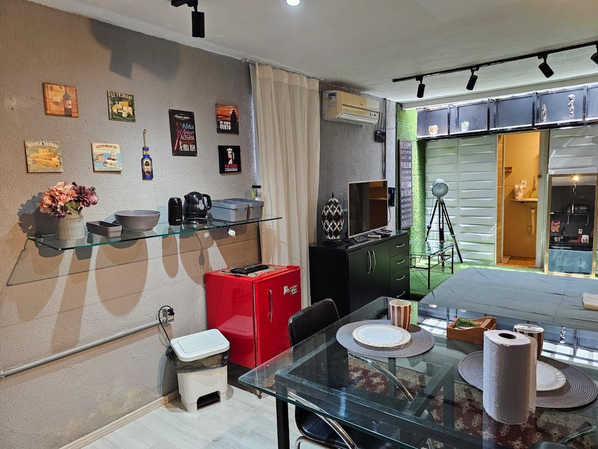 Сучасна та затишна студія в Мейрелесі, Форталеза/CE, 500 м від проспекту Бейра Мар. У студії є повністю обладнана кухня, ліжко queen-size + односпальне ліжко, душ з гарячою водою, швидкий Wi-Fi та балкон з обіднім столом та гамаком для відпочинку. Ідеально підходить для відпочинку або роботи. Кондомініум має чудову зону відпочинку: басейн, джакузі, фітнес-центр тощо