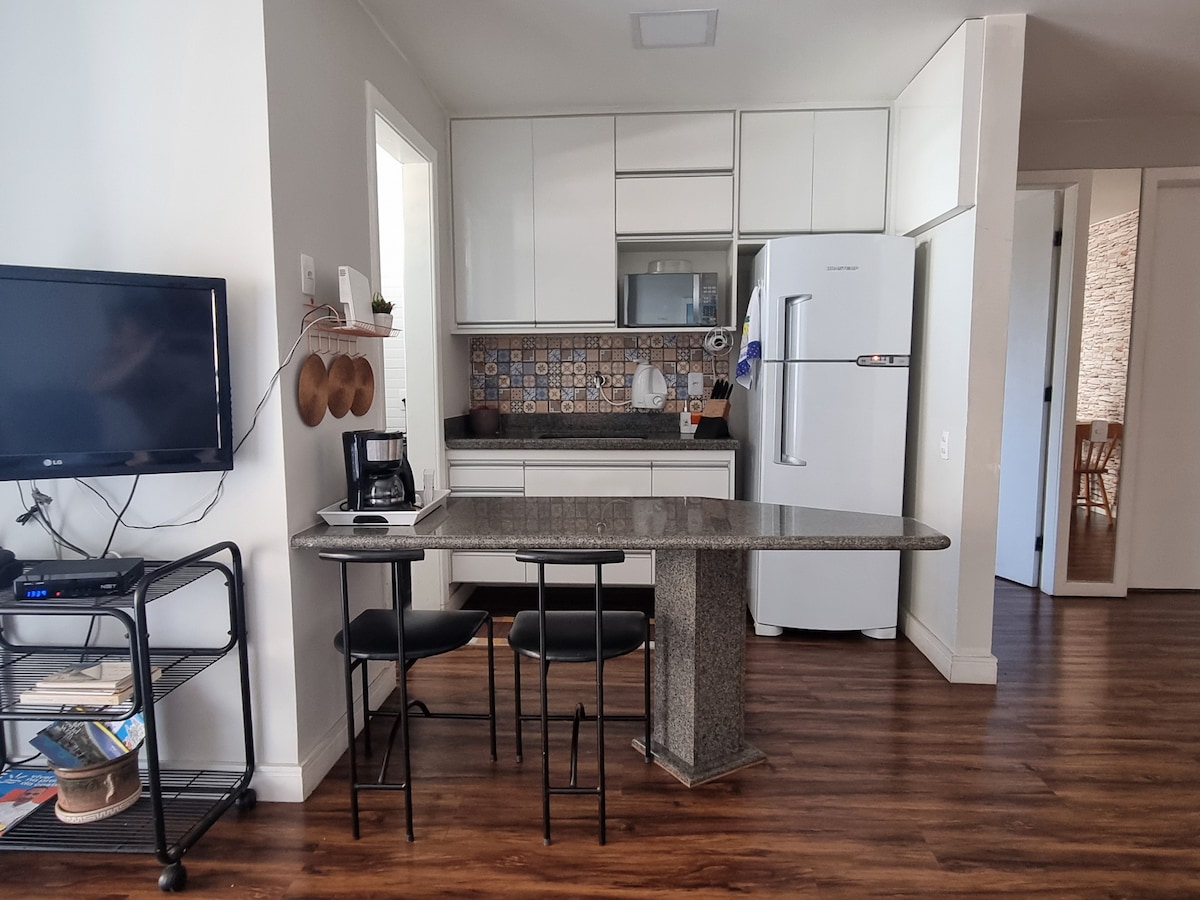 Насолоджуйтеся незабутнім перебуванням у цьому розкішному та затишному пляжі з 2 спальнями Повністю обладнаний гідромасажним спа-салоном із хромотерапією, ліжком king-size і двоспальними реверсивними односпальними ліжками, телевізорами у спальнях і вітальні, Wi-Fi та зручностями для немовлят, ми пропонуємо комфорт, охорону з цілодобовим консьєржем і дозвілля з басейном на даху з видом на набережну. Ви отримаєте унікальні враження у Віла-Велья неподалік від усього Забронюйте зараз і приїжджайте в незабутні моменти зі своєю сім 'єю!