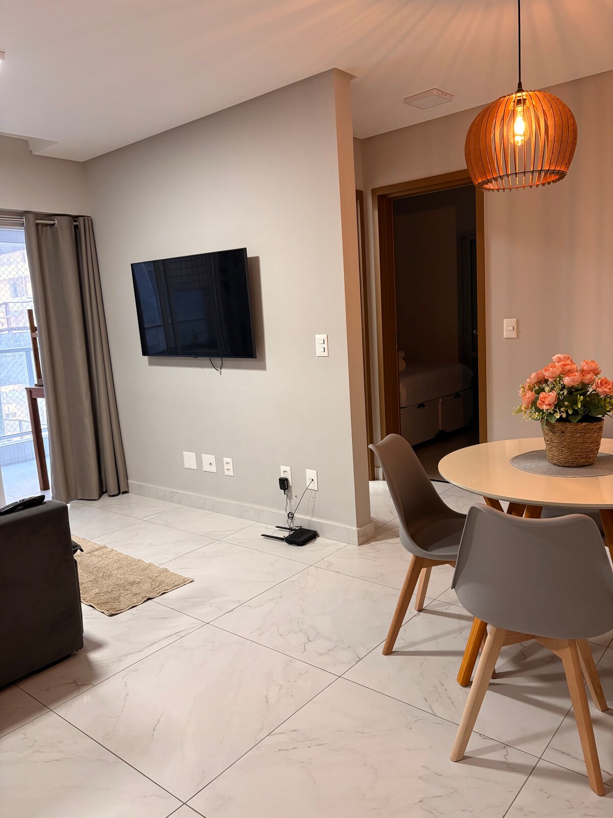 Este lugar único tem um estilo próprio. Apto Novo em bairro privilegiado, fica a 400 metros da Praia ao lado da Av Mallet e ao lado do Batalhão do Exército. Sacada com Tv e churrasqueira à carvão. Quarto com suite ar condicionado e sacada , cama de casal ,mais dois colchões extra . Aquecimento elétrico , apto moderno e cozinha completa.