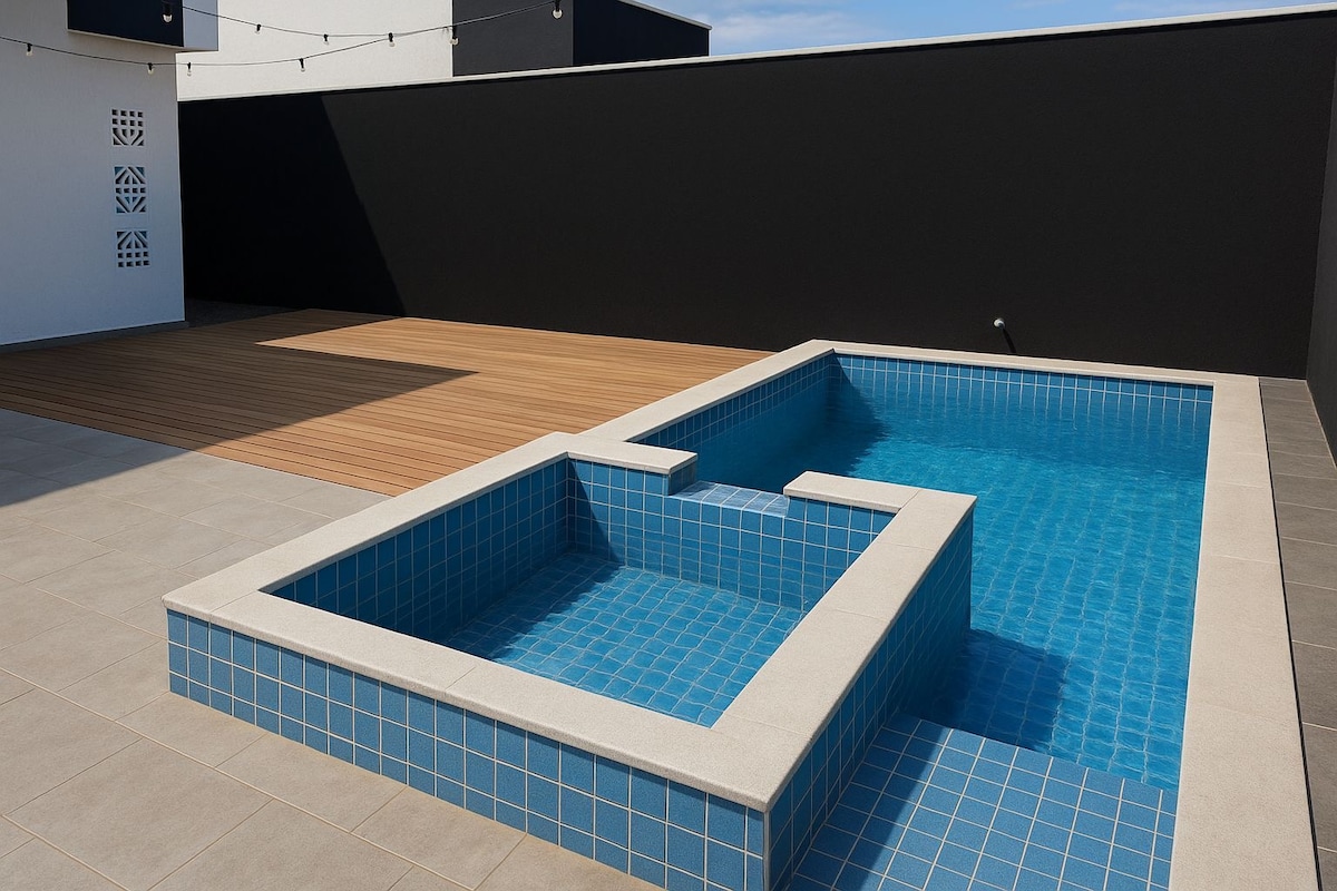 Vila exclusiva com piscina, jacuzzi e jardim.