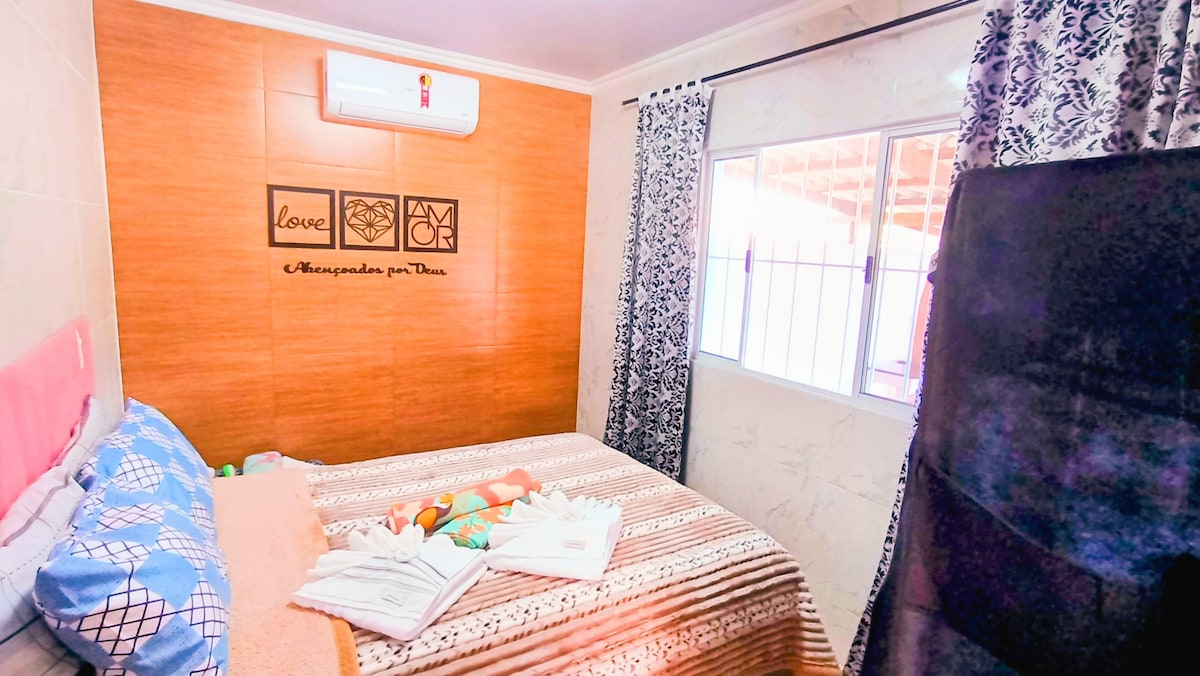 Будинок з терасою, розташований у привілейованому районі Ітаколомі, недалеко від супермаркету, АЗС, аптеки, ресторанів, кафе, готелю Candeias та 600 м від моря. У будинку є 2 апартаменти на верхньому поверсі з кондиціонером, кухонна кімната, обладнана пральня, мебльована та оформлена, а також парковка на 1 автомобіль, електронні ворота, зовнішній душ та зовнішня камера відеоспостереження. Крім того, у нас є підставка та дитяча ванночка. Всього в 20 хвилинах від парку Бето Карреро.