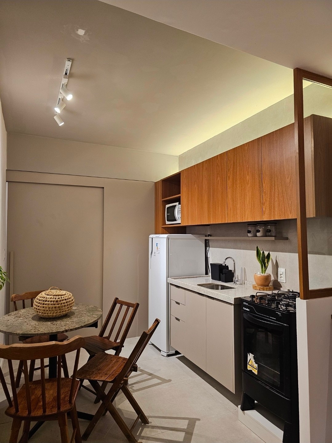 Aconchegante Studio Mobiliado з чудовим розташуванням Студіяплощею 19кв. м, мебльована та обладнана для комфортного перебування. Ідеально підходить для одиночних мандрівників або пар. Сучасне середовище, міні-кухня та швидкий Wi-Fi. Переваги студії: Якісні меблі та чарівний декор Повністю обладнана кухня Розташування: Поруч пекарні, ресторани, бари та аптеки Легкий доступ до громадського транспорту Забронюйте зараз і насолоджуйтеся зручністю бути ближче до всього!