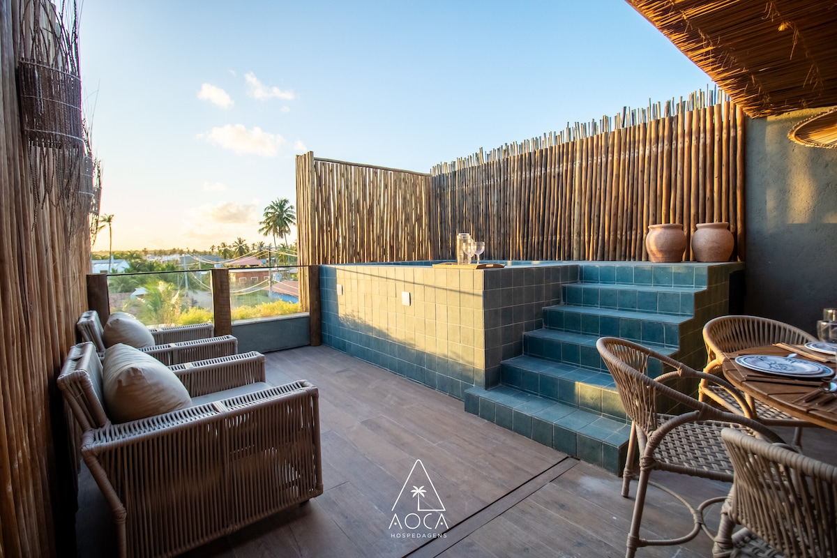 Ласкаво просимо до Casa Guaimbê – притулку, де поєднуються спокій кокосових дерев і північно-східний вітерець із комфортом і зручностями курортного кондомініуму. Розташований у чарівному районі Прайя-ду-Токе, одному з найбільш збережених у регіоні, головною принадою є дах із приватним басейном, панорамним видом і захоплюючим заходом сонця. Ми також пропонуємо сніданок і вечерю у відомому ресторані Dádiva, розташованому всередині нашого кондомініуму (вартість не включена). Неймовірні враження!