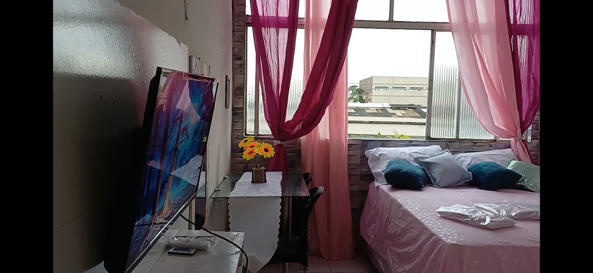 Добре обладнане помешкання з апартаментами. У ньому є кондиціонер, смарт-телевізор, міні-бар, двоспальне ліжко та стіл. Спільна кухня на відкритому повітрі, обладнана плитою, холодильником, столом, кавоваркою, сендвіч-мейкером тощо. Є барбекю з відкритою зоною для відпочинку. Кухня добре обладнана всім необхідним для приготування їжі. Навколишнє середовище затишне, знайоме і дуже добре розташоване. Близько до аеропорту Гуарарапес, центру міста, університетського міста, Боа-Віажен, Олінди...