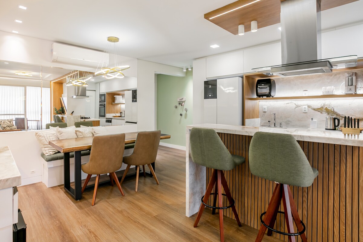 Відкрийте для себе Флоріанополіс, зупинившись у цій затишній квартирі в житловому районі Жуан-Паулу. Оснащений 2 апартаментами з кондиціонером, повноцінною вітальнею та кухнею, робочою зоною та приватним барбекю на балконі, він ідеально підходить для відпочинку або роботи. Всього в 350 м від пляжу Сако-Гранде і недалеко від магазинів Floripa Shopping, він пропонує ідеальне поєднання зручності та комфорту. Забронюйте зараз і насолоджуйтеся найкращим у Флоріпі!