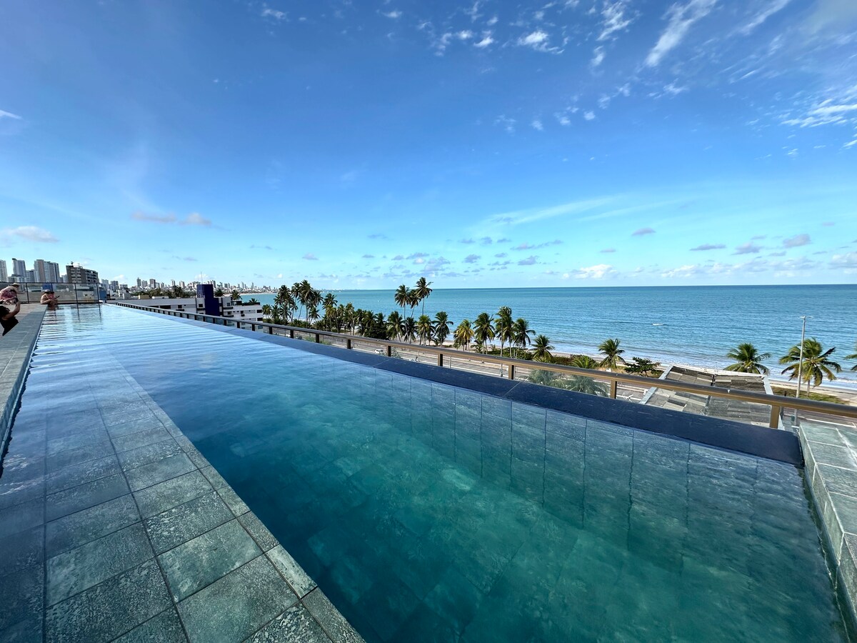 Flat luxo, confortável e aconchegante. O empreendimento fica beira mar na orla de Cabo Branco. A cobertura possui piscina com borda infinita, jacuzzi, espaço gourmet e vista para o mar. O flat é equipado com Ar Condicionado, 2 camas de casal, 01 tv 43 polegadas, toalhas, roupa de cama, geladeira, micro-ondas, sanduicheira, cafeteira, talheres, pratos, copos, xícaras. Cod. 115