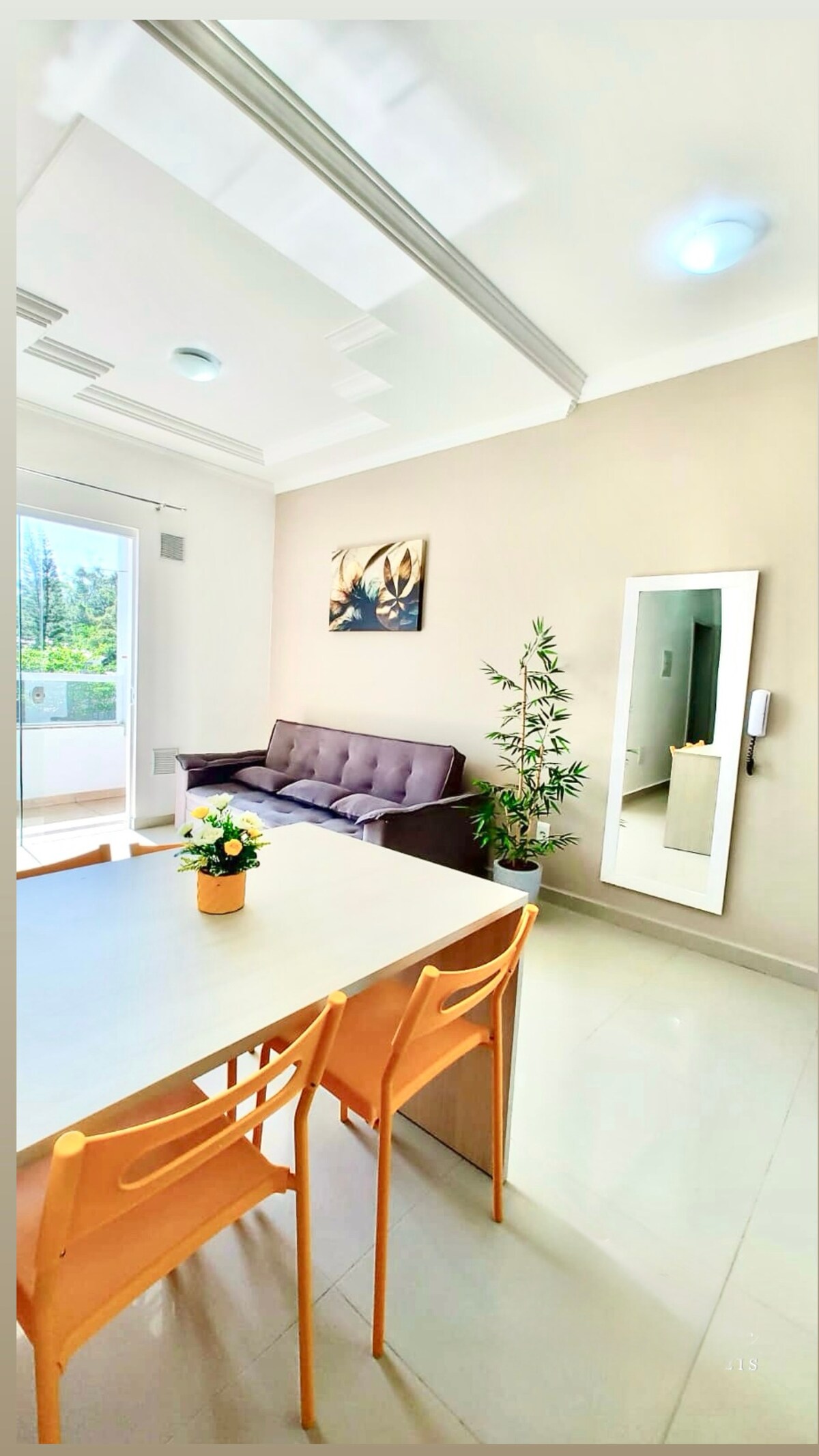 Apartamento Novo,mobilias novas,com 1 quarto com cama de casal e ar condicionado,1 banheiro,sala e cozinha conjugadas com sofa cama que comporta 1 adulto e ou 2 criancas e está com as janelas e sacadas com telas de proteção.Internet net/claro de 250 mega e TV Net/Claro HD Mix.Fechadura eletrônica da Intelbras. Vaga de garagem que comporta carros de pequeno e médio porte.Não aceito carros grandes,na dúvida por favor consulte.