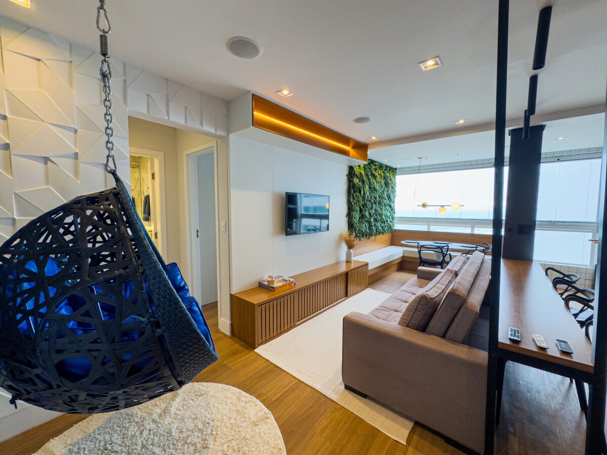 🌊 Вид на море + всього 2 хвилини від пляжу! Новий, безпечний кондомініум, розташований у найкращому районі Прайя-Гранді. Квартира повністю, з: • Балкон для гурманів для відпочинку • Обладнана кухня • Wi-Fi та смарт-телевізор • Пляжні крісла та кулер Все близько до барів, ресторанів та ринків — не потрібно вивозити автомобіль із гаража. Супергосподар ⭐ | Відмінні відгуки | Ідеально підходить для пар, сімей або друзів