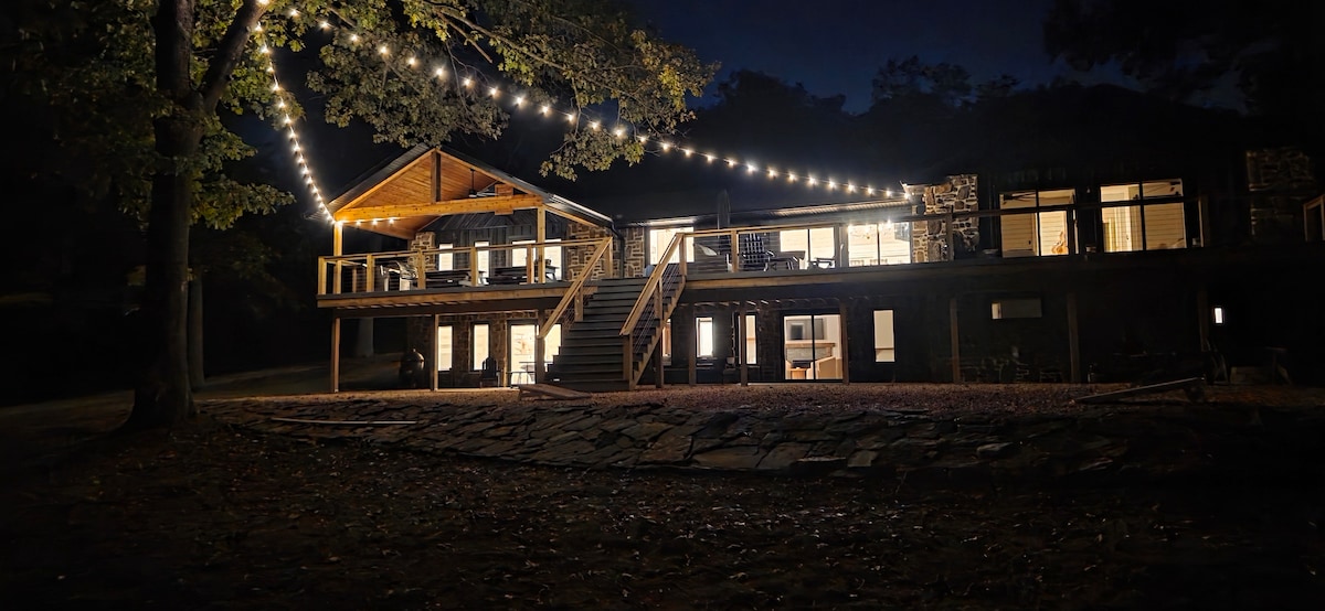 Відпочиньте в цьому сучасному заміському зрубі! Правила щодо перебування з домашніми тваринами: 10 дол. США на день На карті● Airbnb вказано, що помешкання знаходиться в 2 хвилинах ходьби до озера. НЕПРАВИЛЬНО. Це 2 хвилини їзди● Цей зруб має красиво оформлену кухню, де є барна стійка, шафи, змішувач для наповнення каструль, повнорозмірний холодильник і газова плита. Головна спальня має затишний сільський шарм, стіни з дощок і ліжко розміру Queen size. Головна ванна кімната має розкішну скляну душову кабіну від підлоги до стелі.