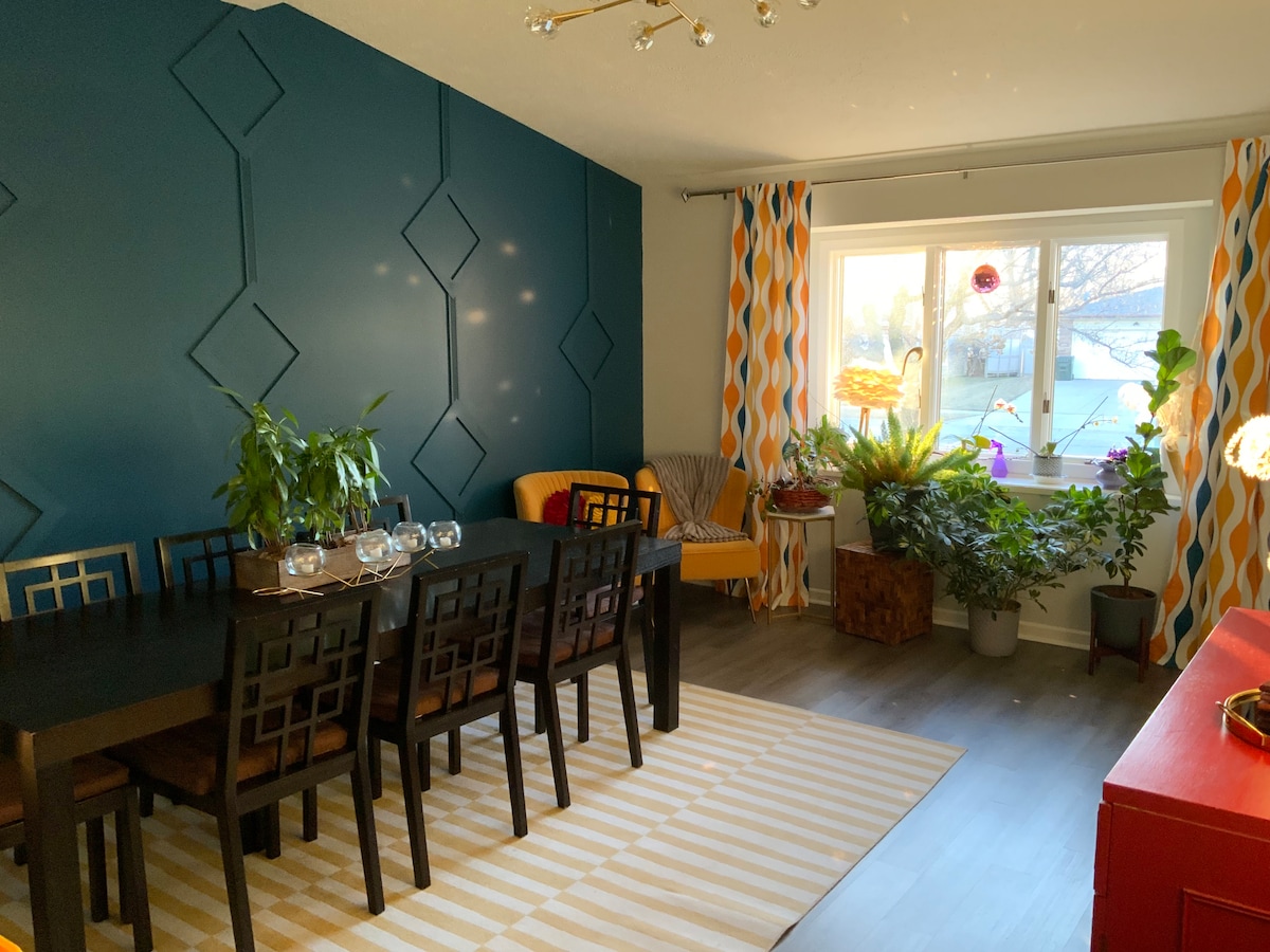 Your Lincoln adventure starts here! 😊 Stay in our modern 2BR/1BA townhome in peaceful Capitol Beach! Enjoy stylish decor, private patio w/grill, 2-car garage. We’re just minutes from Lincoln’s lively Haymarket & Railyard districts — packed w/fine dining, great bars, coffee shops & entertainment. Sports fans will appreciate the short drive to Pinnacle Bank Arena, Memorial Stadium & Haymarket Park. UNL campus is around the corner. Easy I-80 access — perfect for game days, concerts, and much more!