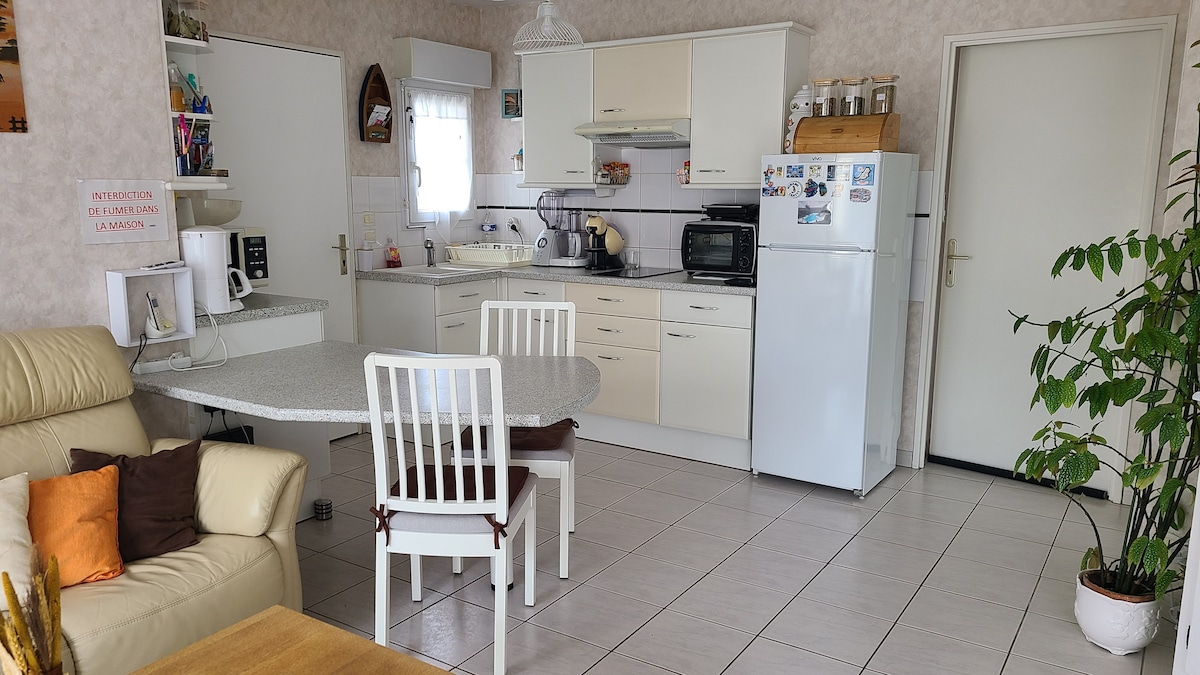 Таунхаус з приємним садом та приватним паркувальним місцем перед помешканням. Собака приймається за умови. Складається з 2 спалень (3 ліжка) і 2 туалетів, 🐕La Patte Charentaise ідеально🐕 підійде для сім 'ї з дітьми, як і дві пари або колеги. Повністю обладнана кухня, включаючи духовку, мікрохвильову піч, холодильник зі справжньою морозильною камерою, кавоварку Tassimo