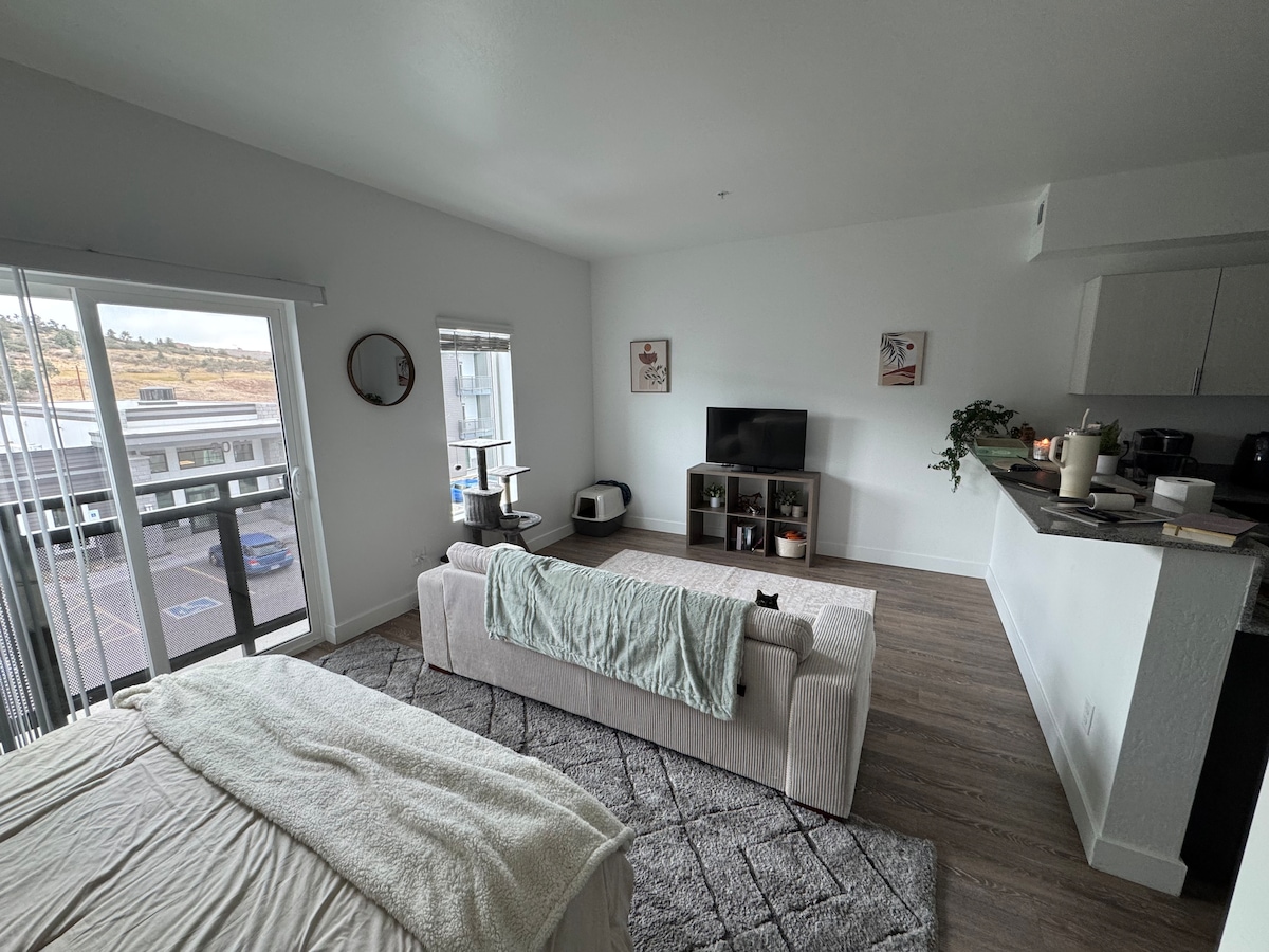 Ласкаво просимо додому далеко від дому. Наші тихі та спокійні апартаменти мають простору повністю обладнану кухню, вітальню з великим смарт-телевізором, плюшеве ліжко King size та блискучу ванну кімнату з великою душовою кабіною. Ми надаємо пральну/сушильну машину для вашої зручності, що робить його ідеальним місцем для тривалого перебування або відпочинку на вихідних! У нашій квартирі також є повністю огороджена територія на задньому подвір 'ї та призначена парковка. Він розташований всього в декількох хвилинах ходьби від парків, ресторанів і в 15 метрах від центру Прескотта.
