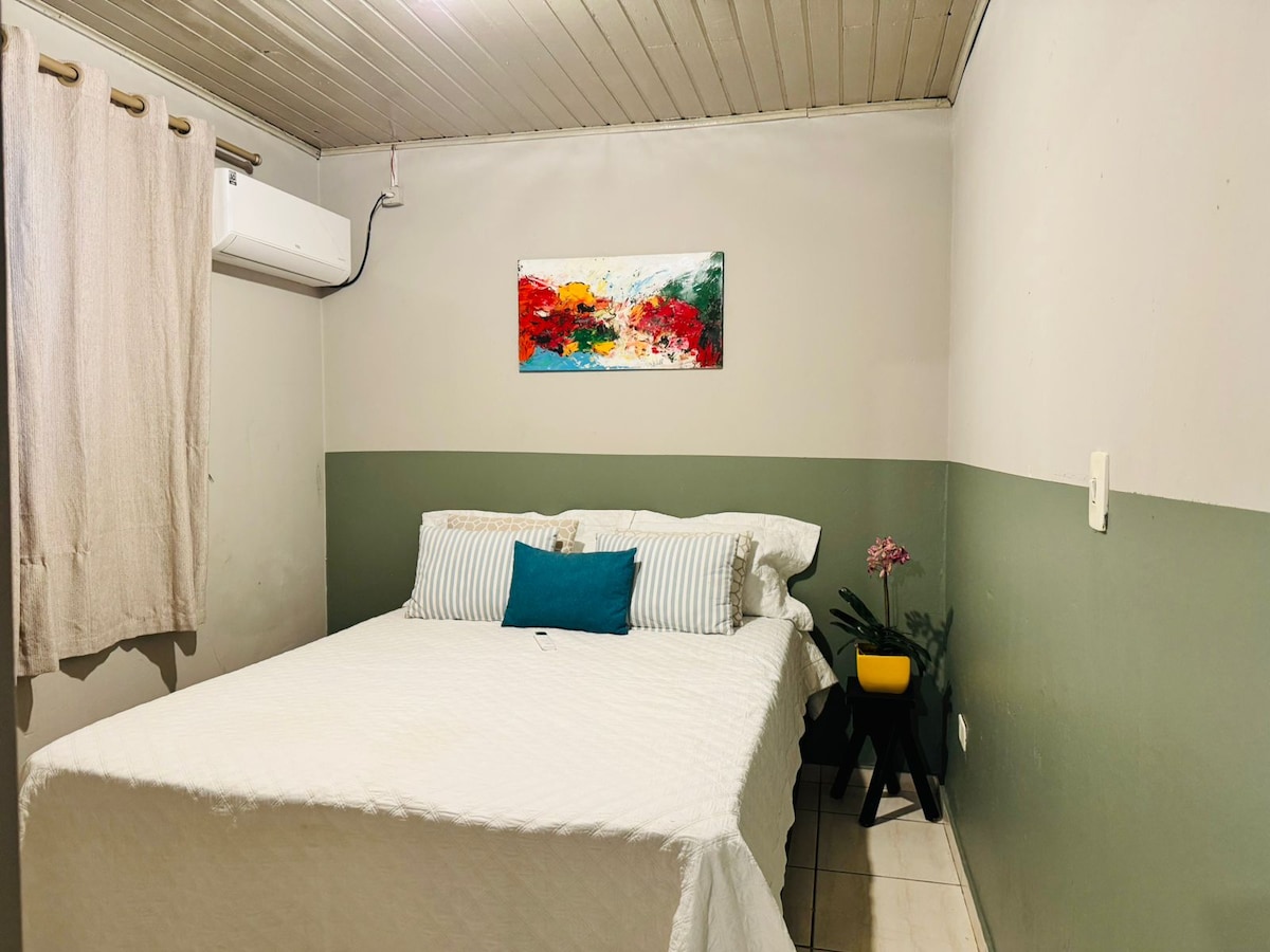 Casa Cozy з видом на зелений пейзаж і в декількох метрах від Balneário da amigo!!! 2 спальні, 1 двоспальне ліжко та 3 односпальні ліжка, 1 ванна кімната, вітальня зі смарт-телевізором, кухня, обладнана всім посудом та технікою, зона обслуговування з критою пральною машиною та гаражем!!! Будинок вміщує до 6 осіб!!! Будинок обладнаний постільною білизною та білизною для ванни, 3 вентиляторами, плитою, холодильником, мікрохвильовою піччю, столом, стільцями, охолоджувачем води... Він вміщує до 6 осіб з окремим матрацом! Спокійне місце!