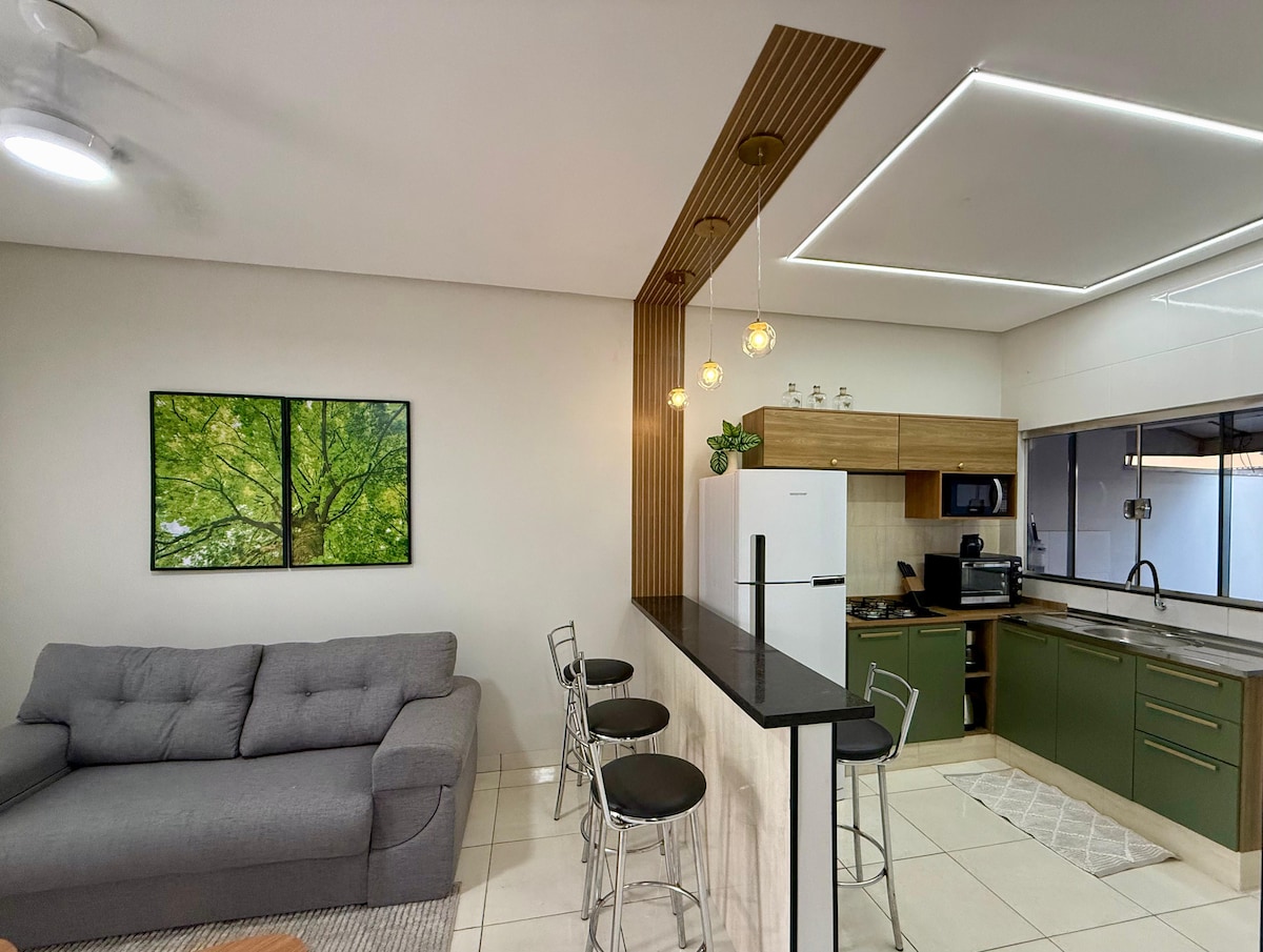 ВІДПОЧИНАЙТЕ В СПОКОЙНОМУ ТА БЕЗПЕЧНОМУ МІСЦІ! Насолоджуйтеся тихим простором, електричною огорожею, внутрішнім і зовнішнім паркуванням, а також легким доступом. Ми знаходимось всього в 50 метрах від BR-070 і дуже близько до центру міста, що забезпечує практичність, не відмовляючись від комфорту.