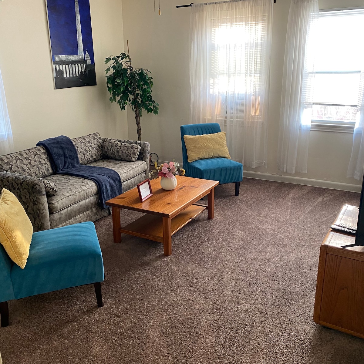 Come enjoy our guest suite located in a lush residential neighborhood in historic Greenbelt. An ideal stay for visitors to nearby government agencies, the University of Maryland, and the Washington Metropolitan Area. Within a half-mile walk are a lake park, Co-op supermarket and pharmacy, local restaurants, game courts, and athletic fields. I-95 and the Greenbelt Metro Station (WMATA Green Line and MARC Camden Line) are less than a five minute drive away.