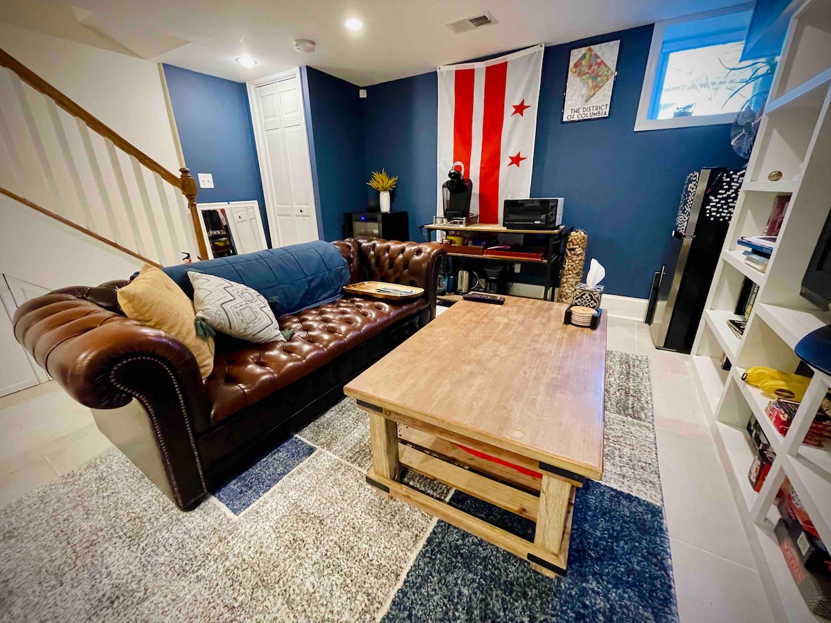 Відкрийте для себе місто без галасу. Насолоджуйтеся світлим, сучасним, нещодавно відремонтованим люксом на вулиці, обсадженій деревами, в метро, окрузі Колумбія. Серед них: розкішний матрац розміру «queen size» Casper, безкоштовна вулична парковка, спільний задній двір із вогнищем та грилем, просторий душ зі спа-лавкою, міні-кухня з холодильником, мікрохвильова піч, кава/чай, безкоштовні рушники та туалетне приладдя, смарт-телевізор з Netflix, Prime Video, телевізор з прямим ефіром тощо, шафа з праскою, полиці та місце для багажу, а також високошвидкісний Інтернет.
