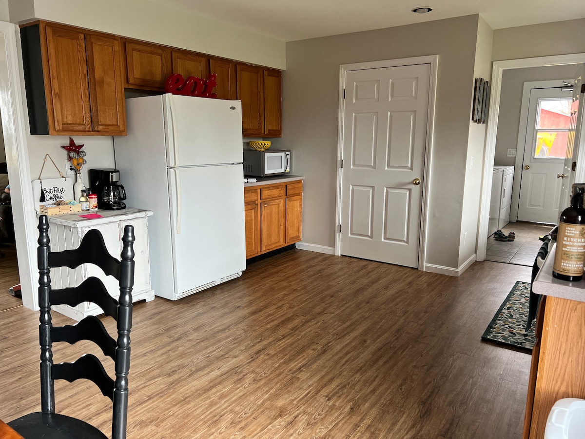 Уютна студія розташована на 90 акрах приватної власності, включаючи природоохоронні лісові масиви та поля, ідеально підходить для непростого походу та огляду дикої природи. Апартаменти мають 1 ліжко королеви з розгорнутим ліжком та повну ванну кімнату з душем та підбіркою рушників. Повністю обладнана кухня оснащена холодильником, мікрохвильовою піччю, а мийка і сушарка внизу означають меншу упаковку. Коли ви не відвідуєте сільську місцевість, тут є WiFi і смарт-телевізор, які допоможуть вам розважитися.