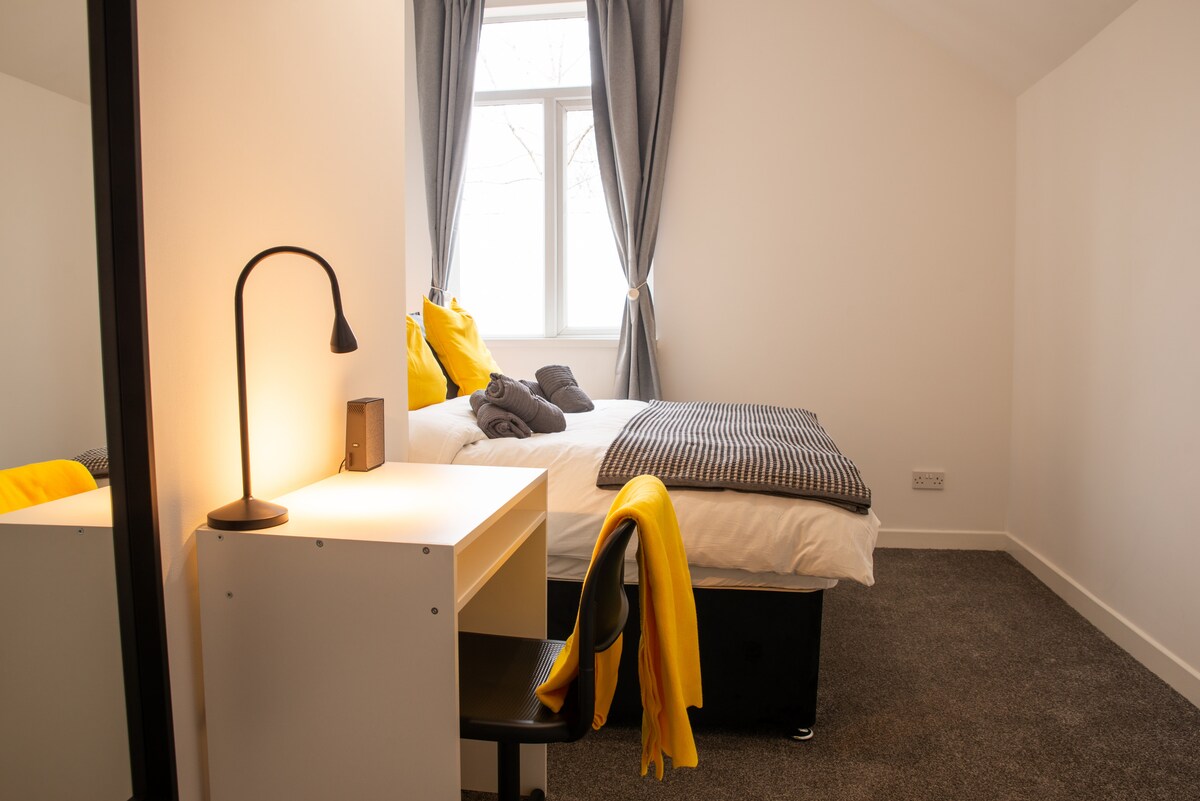 🌟 Насолоджуйтеся власним помешканням у Західному крилі - всього в декількох хвилинах від Університету Кардіффа та Університету Південного Уельсу. У цій приватній студії є невелике двоспальне ліжко, суміжна ванна кімната, кухонна зона, робочий стіл і достатньо місця для зберігання речей. Мешканці мають доступ до тренажерного залу та оточені найкращими магазинами, нічним життям і транспортним сполученням Кардіффа. Планування кімнати може різнитися. Потрібно надати посвідчення особи студента після бронювання.