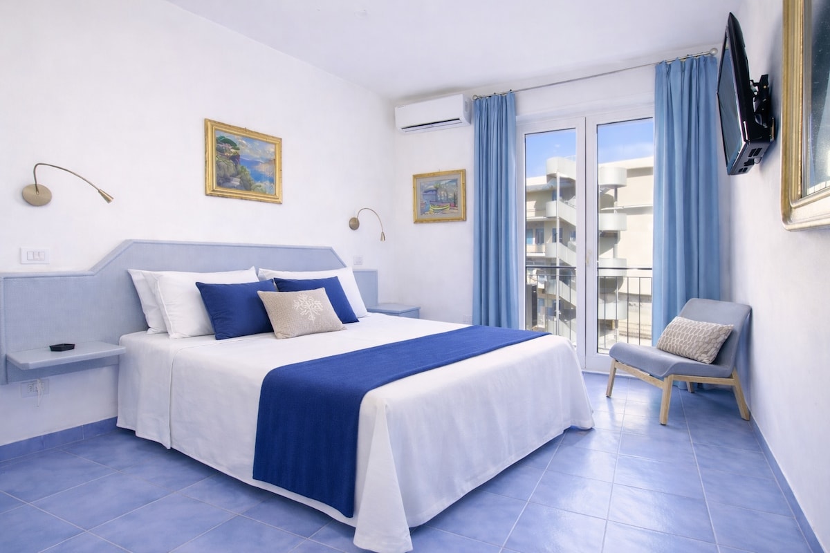 Welcome to Cafiero Azure Flat, a bright and spacious apartment with balcony and sea view, located on Corso Italia in the heart of Sorrento, with elevator access and surrounded by restaurants, shops, and bars. From the private balcony, you can enjoy a beautiful open view of the Gulf of Naples. The layout with a hallway separates the spaces, ensuring greater privacy, ideal for families and groups of friends. It features 2 bathrooms, A/C, fast Wi-Fi, equipped kitchen, TV and washing machine!