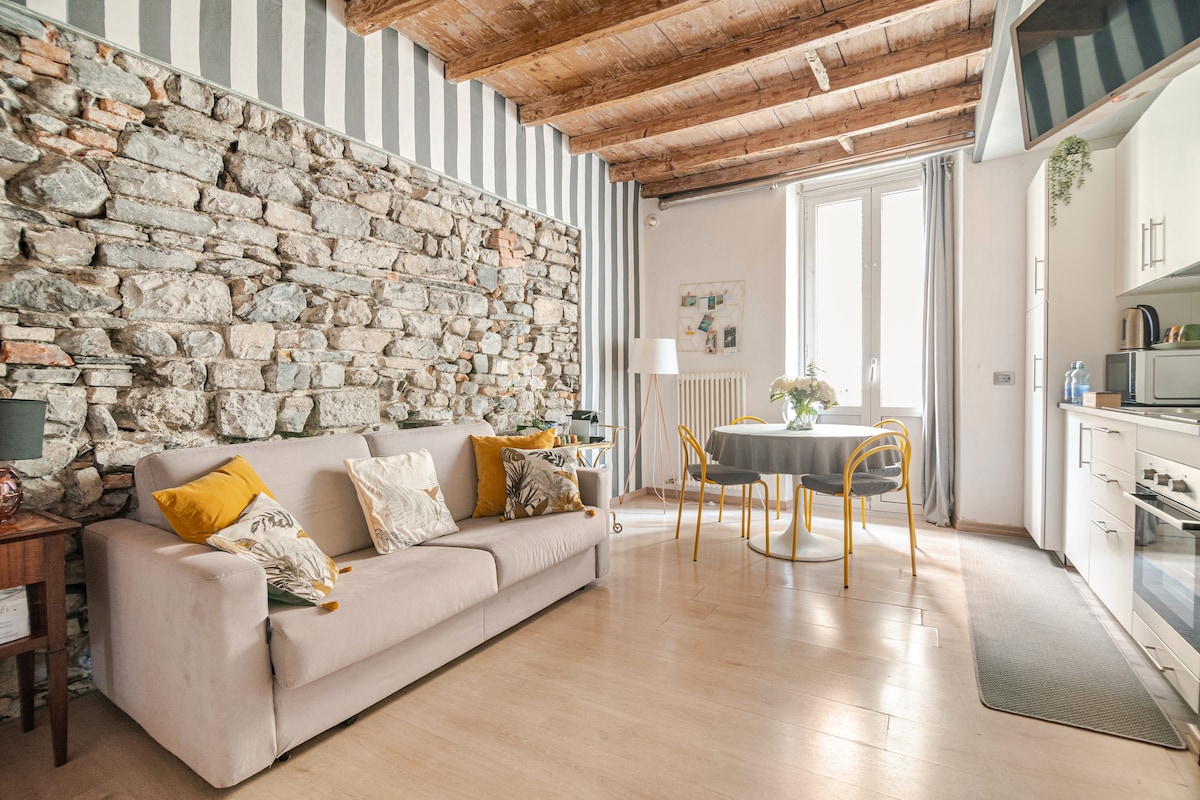 Чудовий відкритий простір в історичному центрі міста в пішохідній зоні. До озера можна дістатися пішки за кілька хвилин пішки по старих вулицях, між елегантними магазинами та ресторанами. Чудово відремонтована та нещодавно мебльована, зберігаючи характеристики будівлі XVIII століття. Ідеально підходить для стильного та стратегічного розташування для чудових екскурсій по території. Якщо у вас більше друзів, забронюйте квартиру по сусідству: airbnb.com/h/ilsognodiluci-comolake