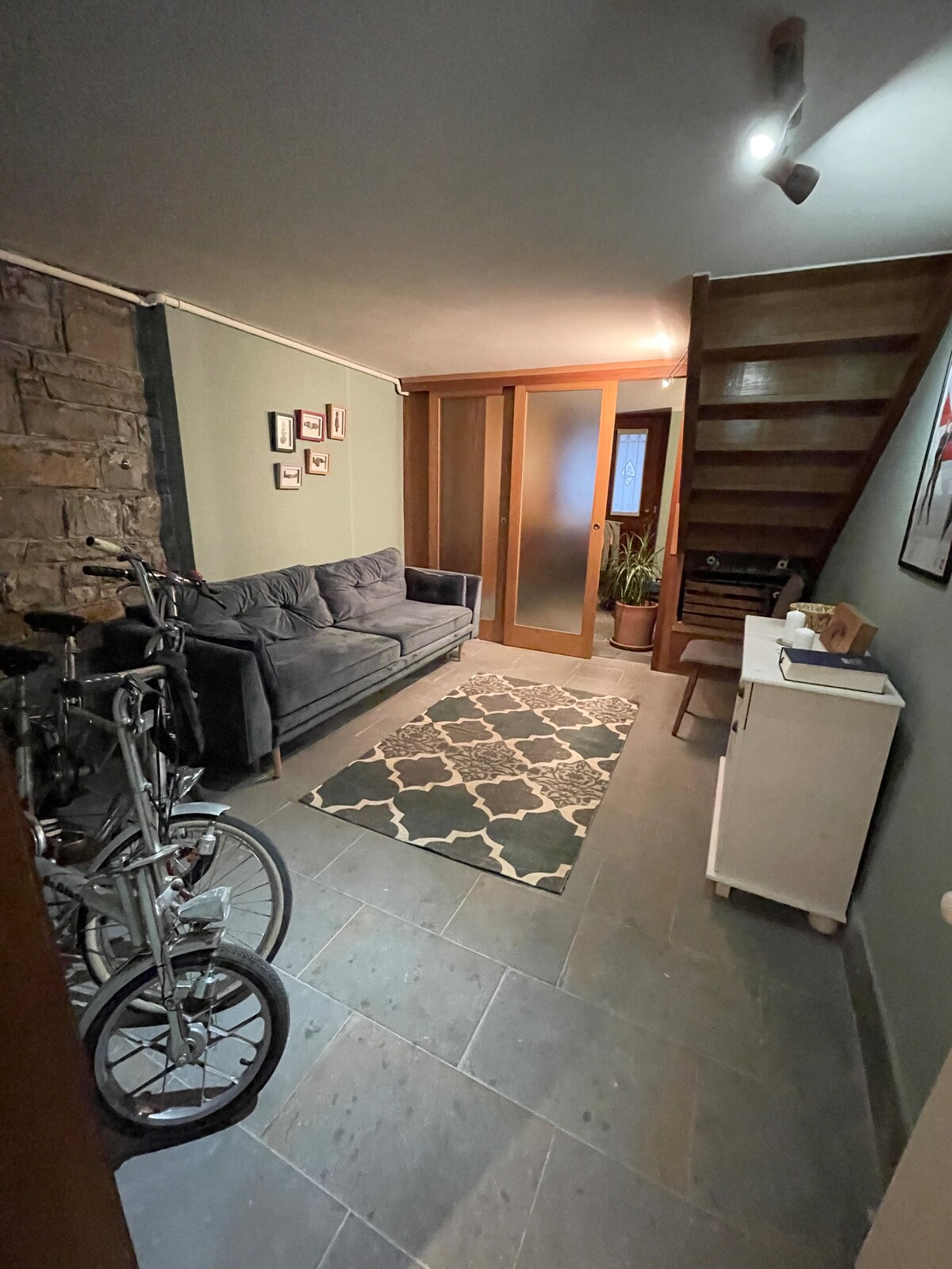 Проживання в одному будинку посеред зелені, до якого легко дістатися до центру міста з лінією 35. Квартира складається з двох спалень на першому поверсі з 5 ліжками (2 односпальні в одній кімнаті, 1 двоспальне ліжко плюс 1 односпальне ліжко в іншій кімнаті) з особистою ванною кімнатою. На першому поверсі розташована обладнана кухня, з вітальні відкривається вид на сад безпосередньо там, де є гриль. Приватна парковка на похилій вулиці максимальною шириною 2,20 метра. Добре