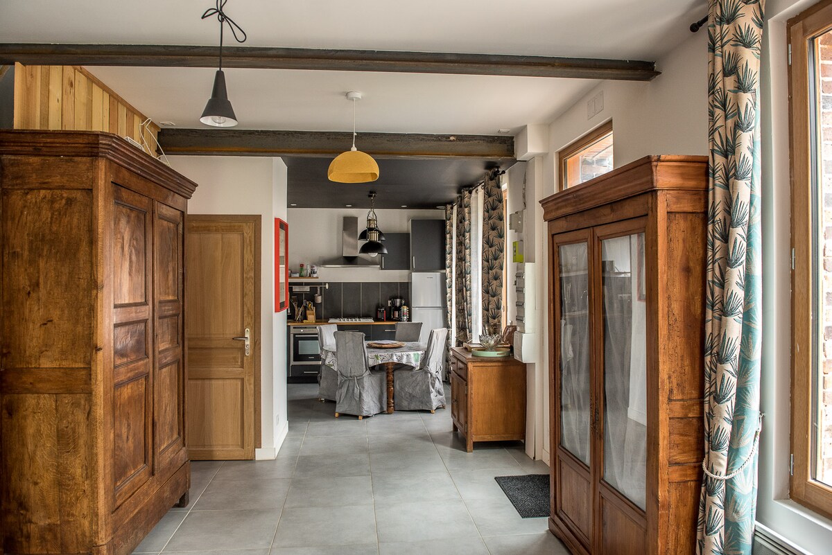 Ласкаво просимо до Нуазі-сюр-Еколь! Наш світлий котедж площею 140 м² із верандою ідеально підходить для сімей або груп друзів. Розташований у центрі лісу Труа-Піньйон, всього в 15 хвилинах ходьби від місць для альпінізму та пішохідних маршрутів. Насолодіться винятковою природою для спокійного, комфортного та унікального перебування. Ідеально підходить для активного відпочинку на природі або відпочинку посеред лісу.