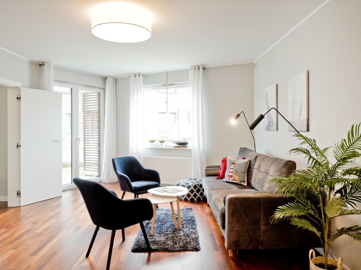 Красива, сучасна квартира в центрі всього цього! Нашому справедливому місту є що запропонувати! Прогулянки та пікніки на пристані, веселі дні на пляжі, природні стежки, приморський бульвар, шопінг та їжа світового класу до наших сердець на першому поверсі від нашого тихого та зручного гнізда. Мистецтво, музика, кафе, розваги та море знаходяться всього в декількох кроках. Швидка поїздка до Гданська та Сопота, щоб отримати повне враження від Tricity або трохи на північ, щоб насолодитися нескінченними просторими пляжами та сільською місцевістю!