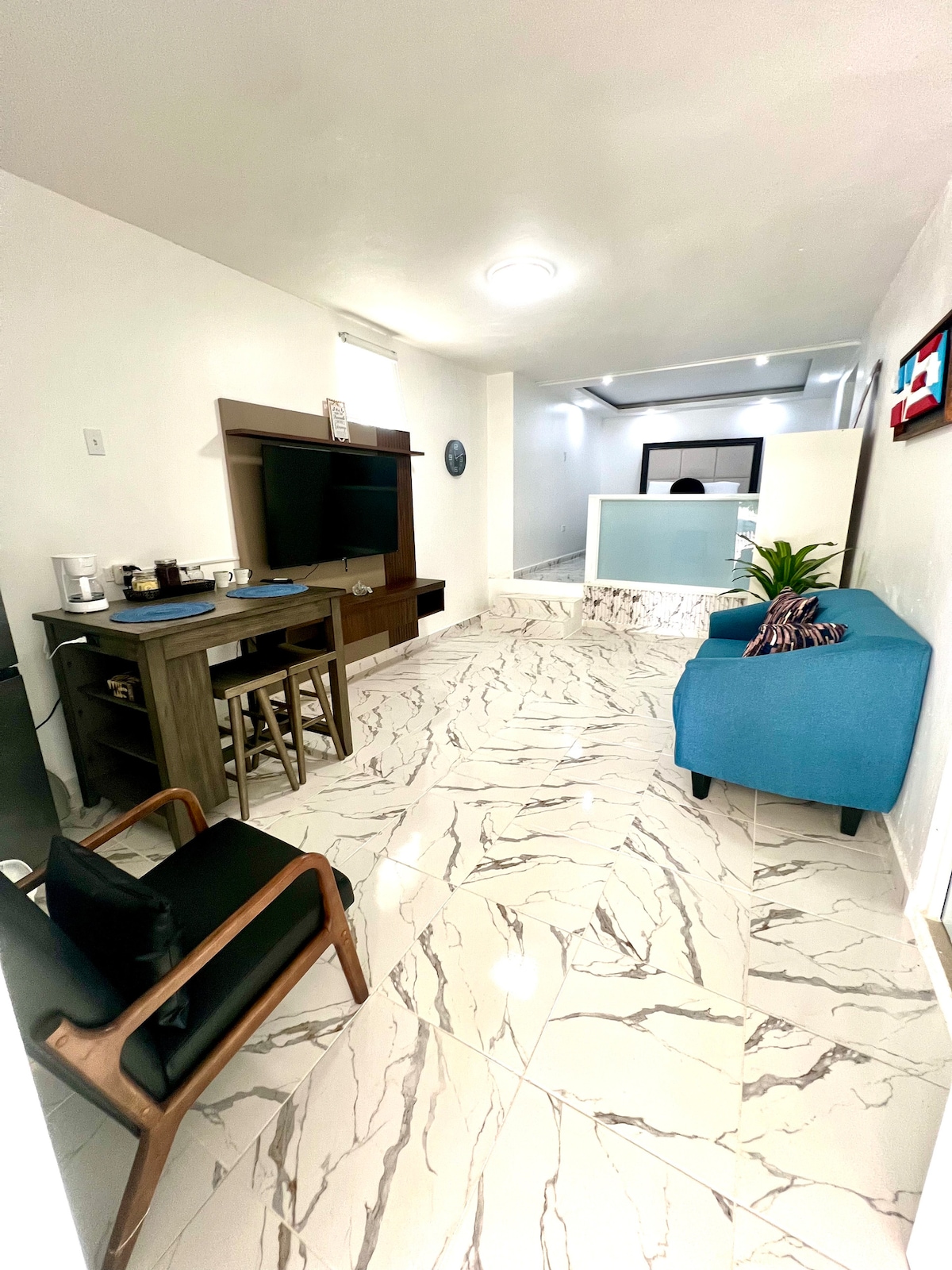 Насолоджуйтеся комфортним перебуванням у цій сучасній студії в Ларесі, лише за кілька хвилин від центру міста. Ідеально підходить для пар, індивідуальних мандрівників або ділових поїздок. До послуг гостей кондиціонер, швидкий Wi-Fi, смарт-телевізор, зручне ліжко, повністю обладнана мінікухня та сучасна ванна кімната з гарячою водою та базовими зручностями. Окремий вхід і паркування на території. Чисте, безпечне та зручне помешкання – ідеально підходить для короткострокового або тривалого перебування.