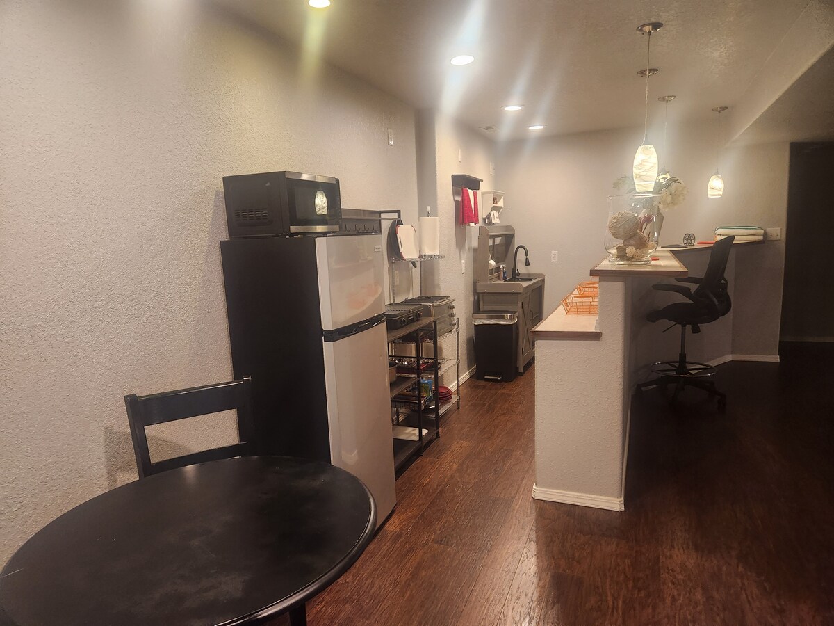 Тихий район, розташований на заході Пуебло. Сидить дуже близько до нашого будинку. Це дуже маленький, але нещодавно відремонтований міні-будинок! 12 x 16 футів одна кімната, ліжко queen-size, приємний душ і туалет з дверима стодоли для усамітнення у ванній кімнаті. Барна стійка з двома табуретами, смарт-телевізор з електричним каміном у кутку надає йому трохи романтики! Loveseat з відтоманкою. Маленький лофт, в якому діти можуть спати на короткий термін. Невеликий кавник, холодильник під стільницею та гарне дзеркало над раковиною на фермі.