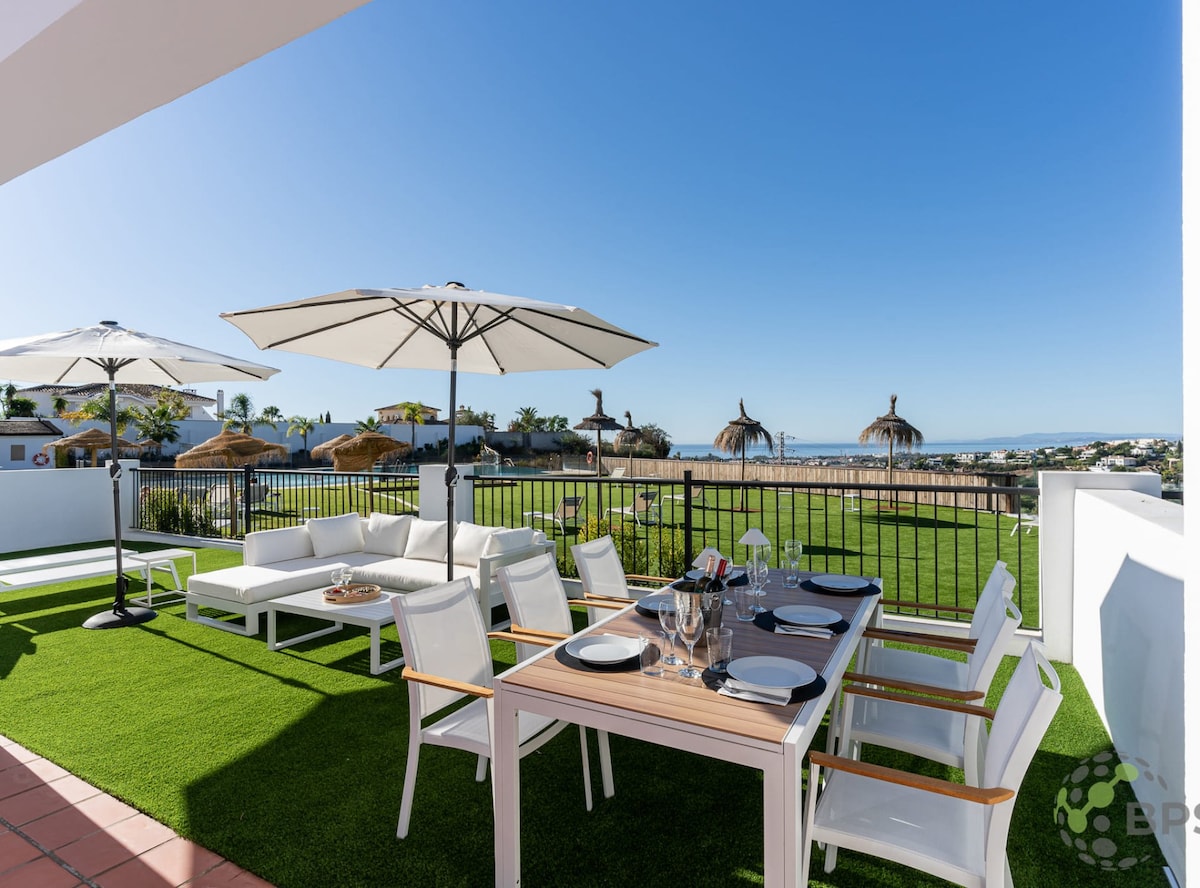 Modern & elegant apartment with breathtaking sea views · Private terrace, pool & garden for sublime outdoor living · Community with immaculate gardens, infinity pool, spa & gym · Perfect for short or long stays · A/C, SmartTV, Free Fast Wi-Fi & Free Parking · Easy Check-in/out · We’re a small family business & care about making every stay special Questions about your stay? Just message me, I’m here to help!