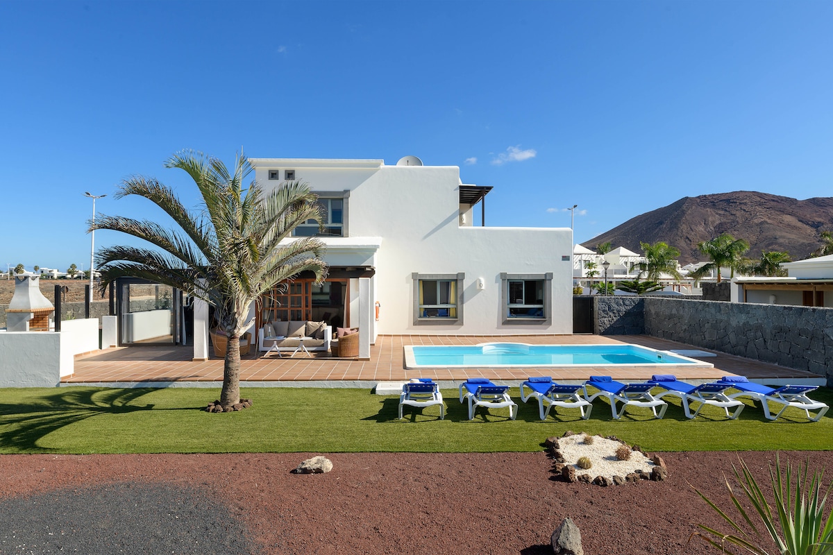 Розкішна вілла з повною конфіденційністю в Плайя-Бланка. В оточенні високих кам’яних стін, захищене від вітру та сторонніх очей. Вид на червоний вулкан. Гарний сад. Океан знаходиться поруч (1 км). Басейн із підігрівом (28 °C) з видом на південь. Велике джакузі (36°C). Душ на вулиці. Крита тераса для прийому їжі, садові меблі та шезлонги. Вхід, велика вітальня, їдальня, обладнана кухня, 1 спальня з суміжною кімнатою, 1 спальня з 2 ліжками та 1 ванна кімната. Приватна парковка. Wi-Fi зі швидкістю 50 Мбіт/с, смарт-телевізор