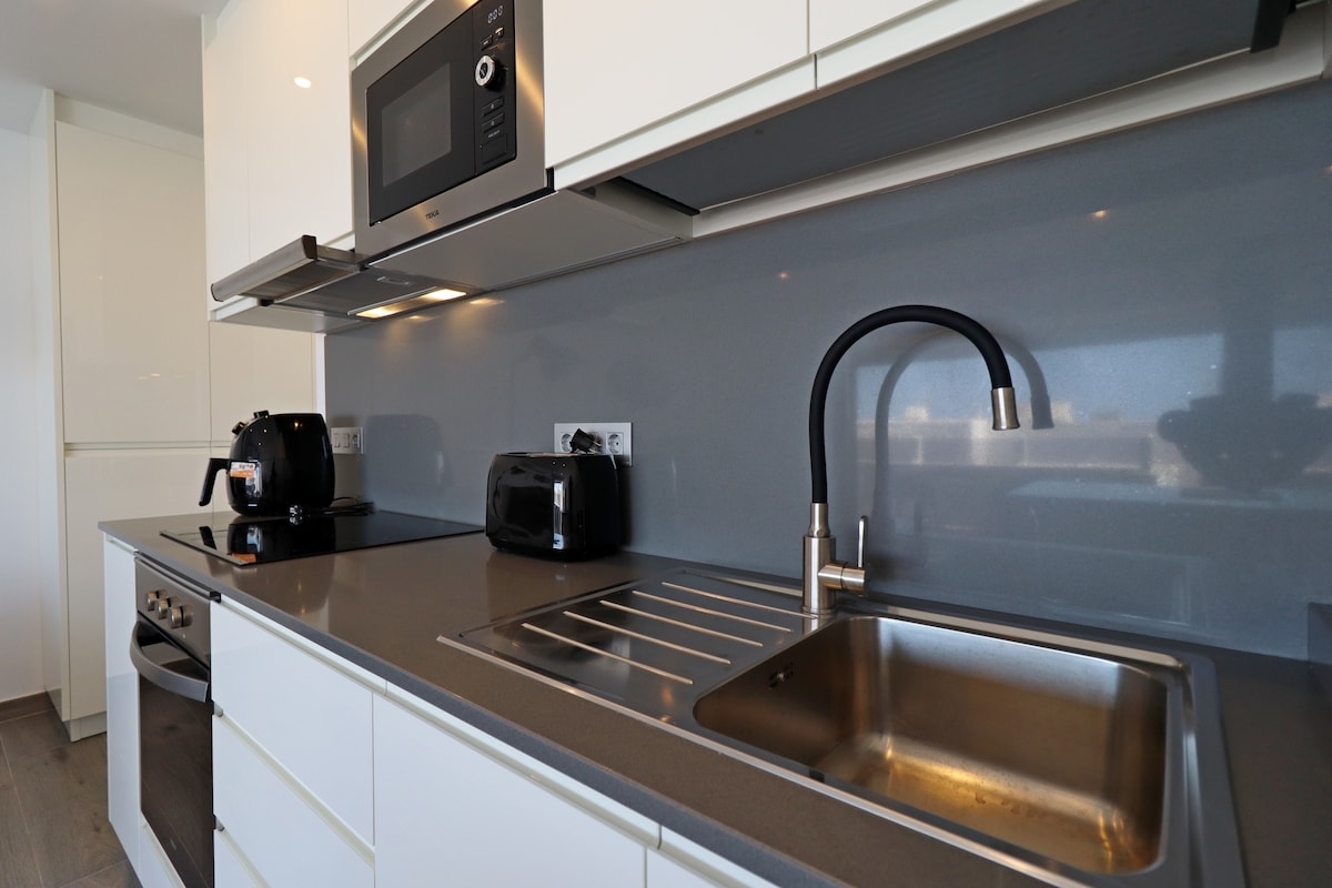 Сучасна та повністю відремонтована квартира, всього в 4 хвилинах ходьби від пляжу, головного проспекту, ресторанів, магазинів та всіх видів магазинів. У ньому є Wi-Fi, кабельне телебачення, велика тераса з садом, кухня, обладнана плитою, витяжкою, мікрохвильовою піччю, тостером, соковижималкою, чайником, холодильником, а також пральна машина, фен та місця для зберігання. За потреби гості можуть скористатися формою для скарг.