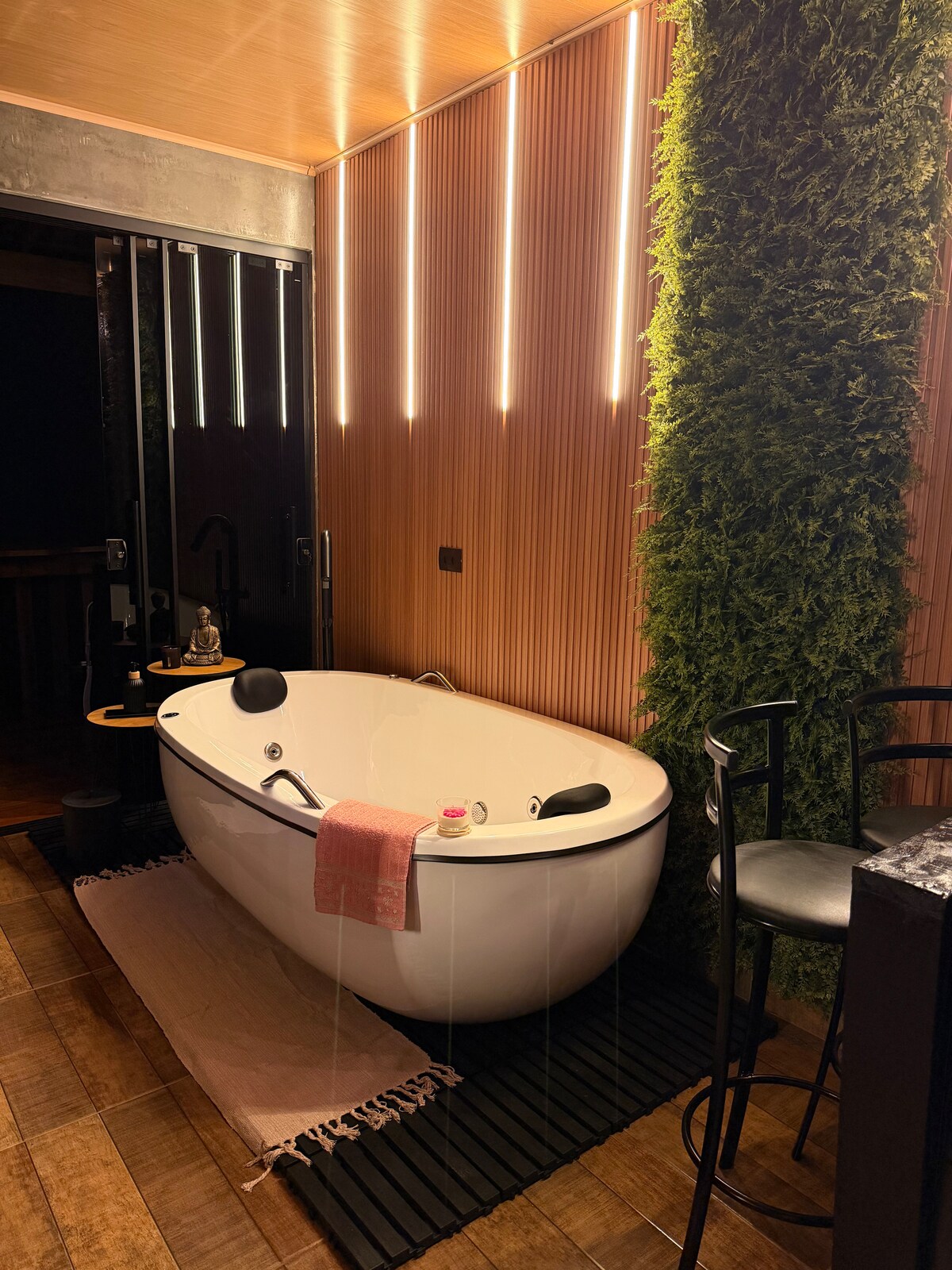 Experiência única na Alma Iguassu, um refúgio de luxo em meio à natureza. Nossas casas em estilo bangalôs combinam obras de arte, charme e conforto, com banheiras de imersão privativas e lindos jardins. Ideal para quem busca relaxamento e momentos inesquecíveis, cada detalhe foi pensado para criar uma atmosfera romântica e acolhedora. Desfrute de um espaço exclusivo, estilo próprio e muito charme em uma localização tranquila, perfeita para se conectar com o essencial.