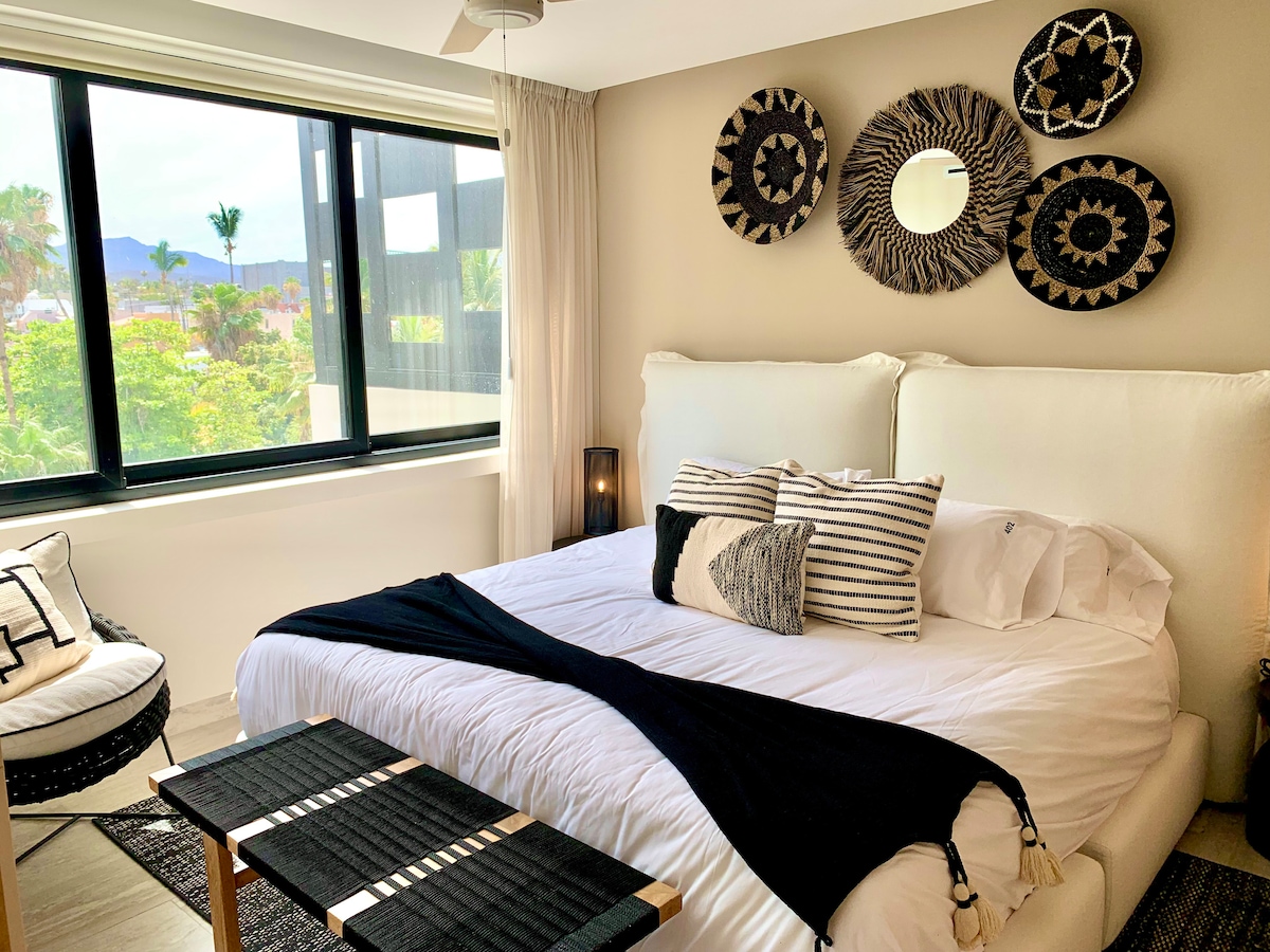 ✨Be our guest & stay at the cutest spot ever💫 In the heart of Romantic San Jose del Cabo-Resort Zone. Steps to BEACH, restaurants, tours, spas, shops & fun! 15mins walk to Historic Center & famous Thursday's night ArtWalk. Come for a long relaxing stay or for a short getaway! Book this magical spot in prime location with outstanding amenities! Shimmering & nicely equipped. Gorgeous La Costa Fase3, with 3 heated pools, 2 jacuzzis, controlled access & parking. Airport transportation. Fees apply.