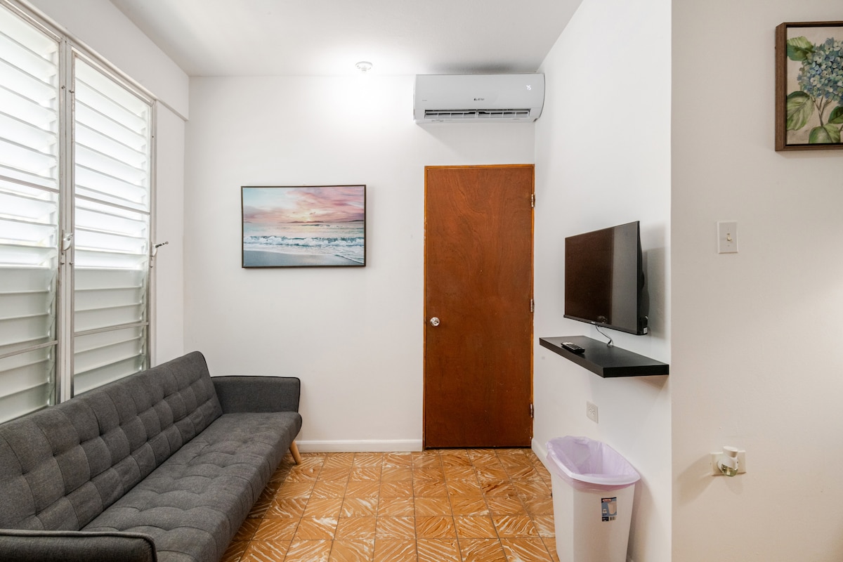 Welcome to our bright and peaceful home! Relax in the hammock, meditate or do yoga on the private balcony. Enjoy the fully equipped kitchen, fast Wi-Fi, TVs and air conditioning throughout the apartment. Driving? No worries - we have a free parking spot. And a short ride, you can easily explore Old San Juan, hit the beach, or head to the airport. Arriving late or leaving early? Our self-check-in process makes it easy and hassle-free. We can't wait for you to experience our cozy retreat!